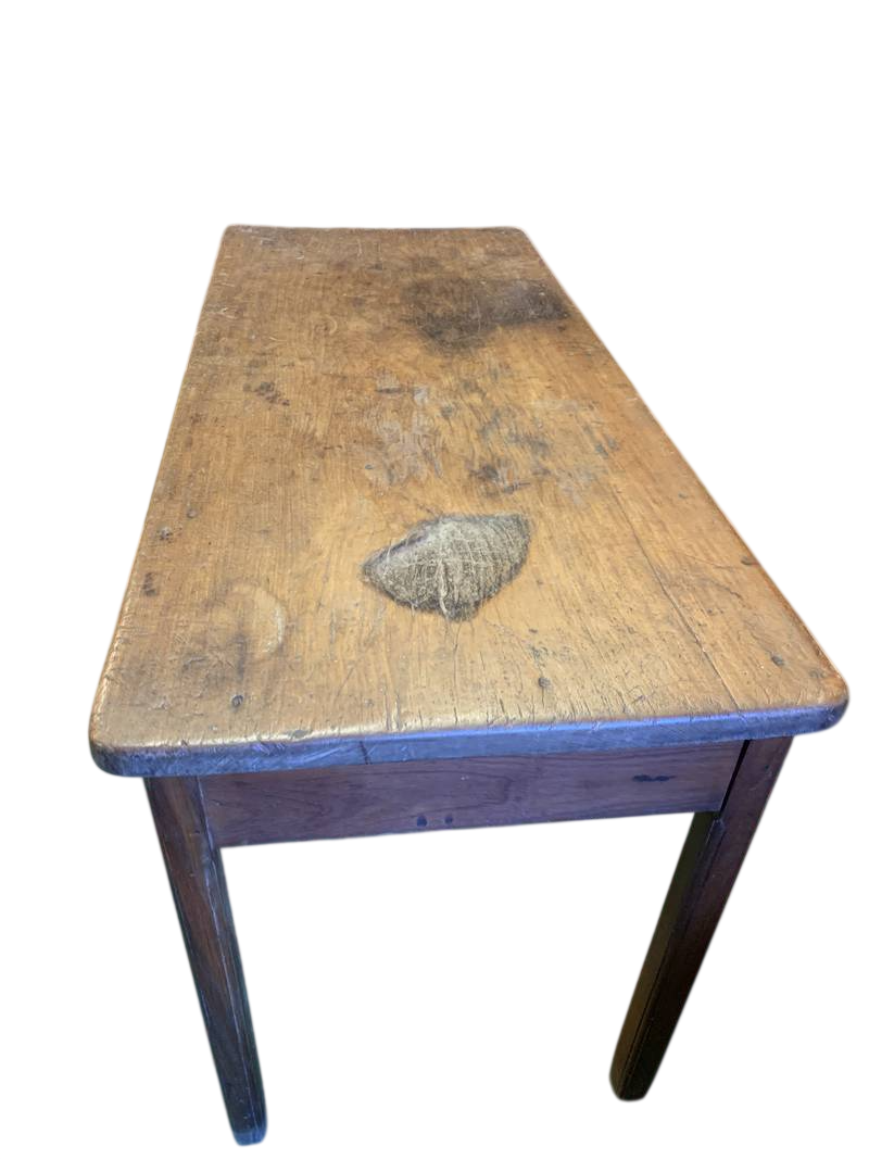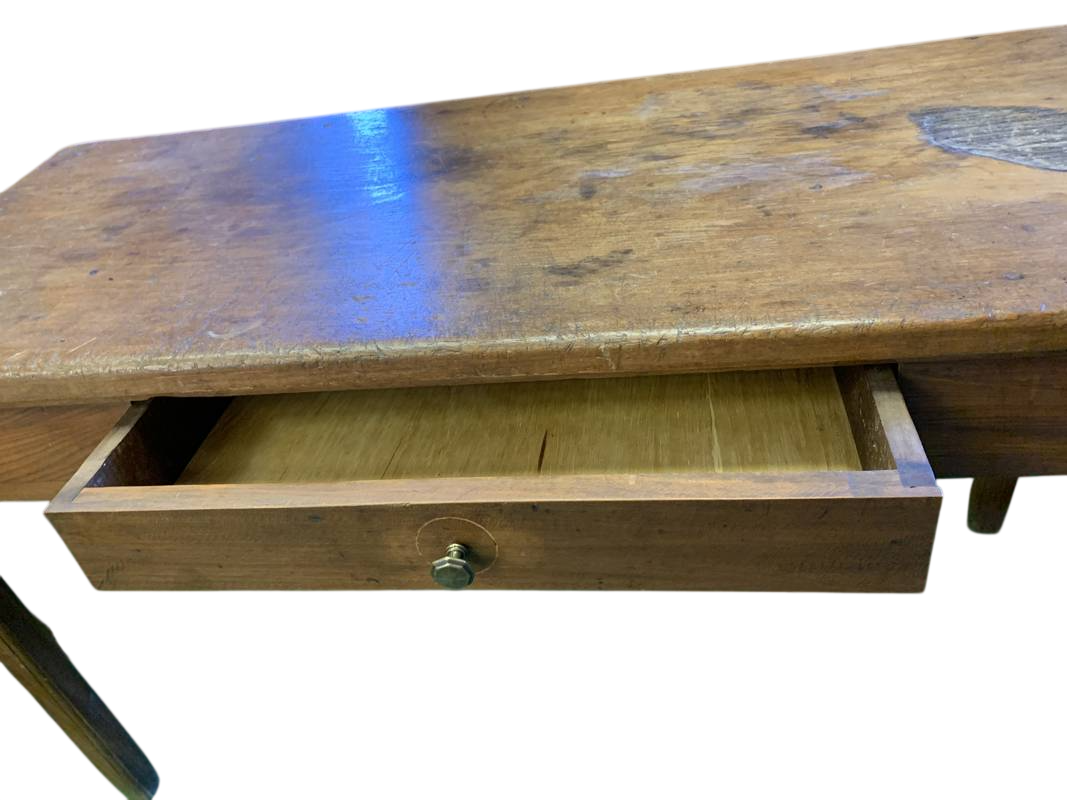 Originale antico rustico tavolo dalle campagne piemontesi in rovere massello, un cassetto sotto al piano ,