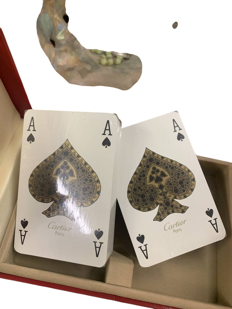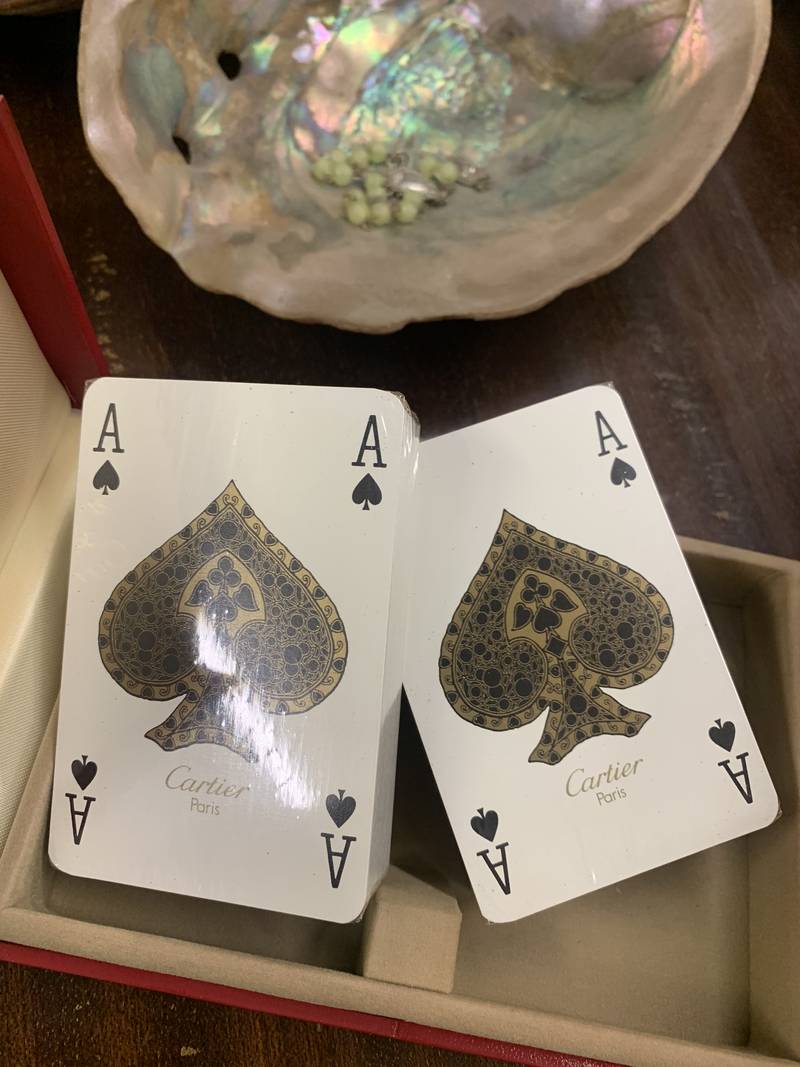 condizioni eccellenti le carte sono ancora intonse, piccolo graffio sull’astuccio in pelle