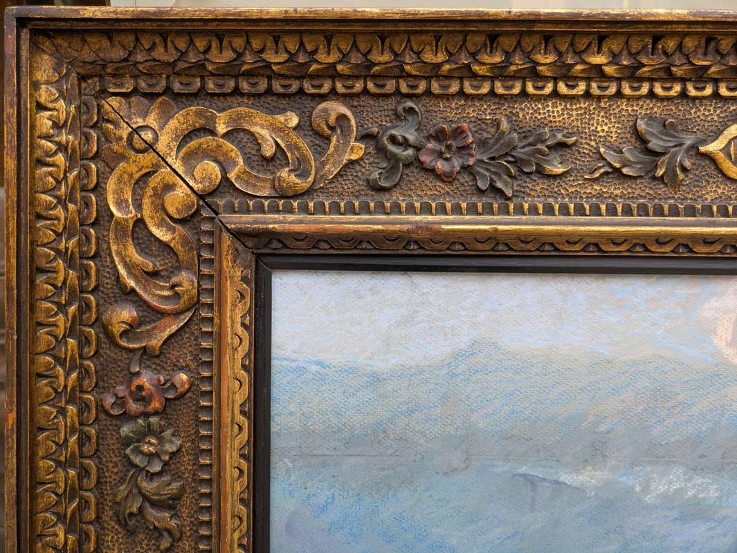 In ottime condizioni conservative come da fotografie, entro cornice scolpita e dorata.