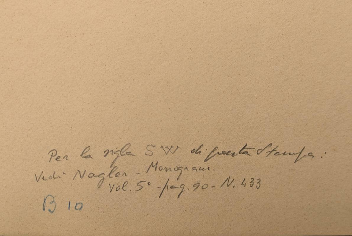 Stampa corredata da breve scheda descrittiva rilasciata dalla libreria antiquaria Bourlot di Torino.