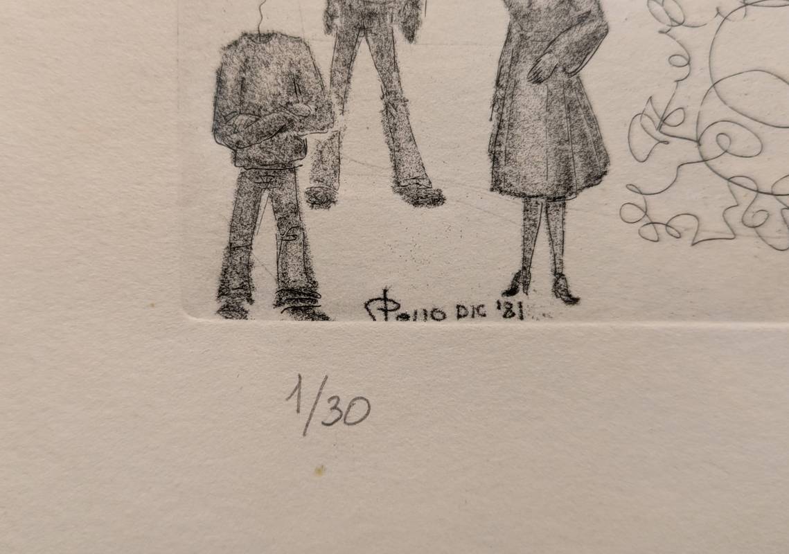 Incisione da acquaforte firmata in basso a sinistra Peppo Chierotti, incisore torinese, datata 1981.