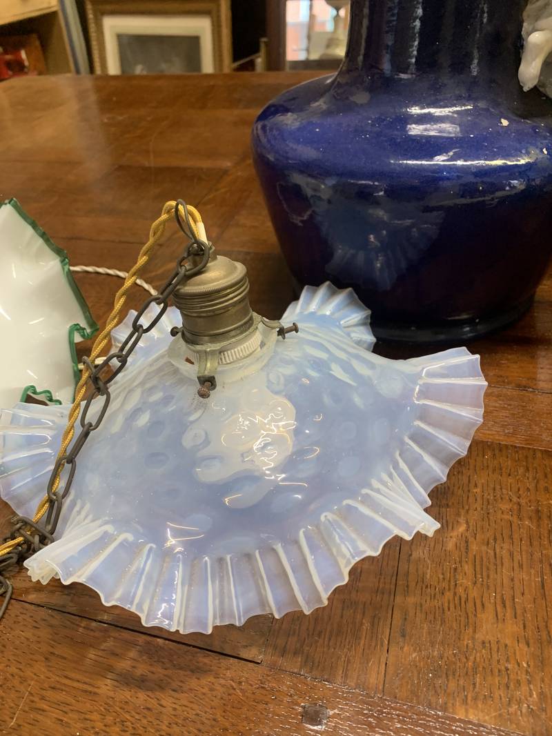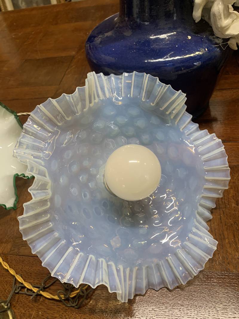 Piccolo lampadario da cucina vetro bianco opalescente saliscendi Murano anni 40