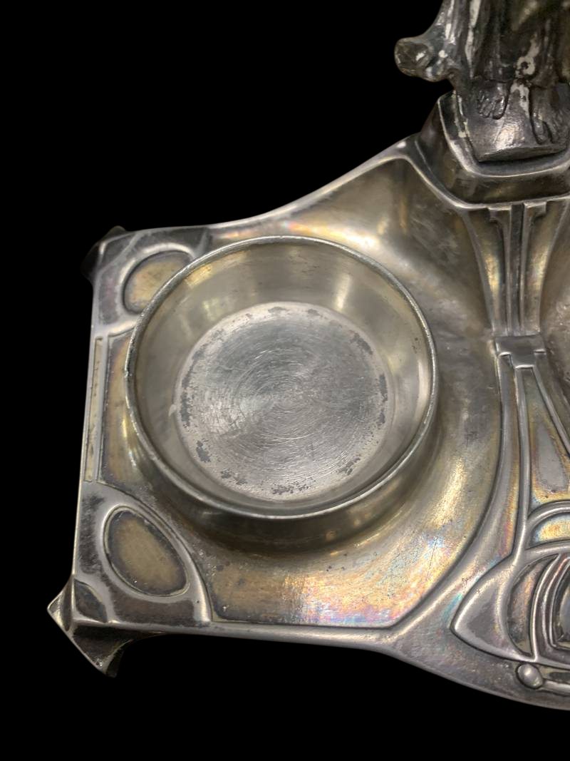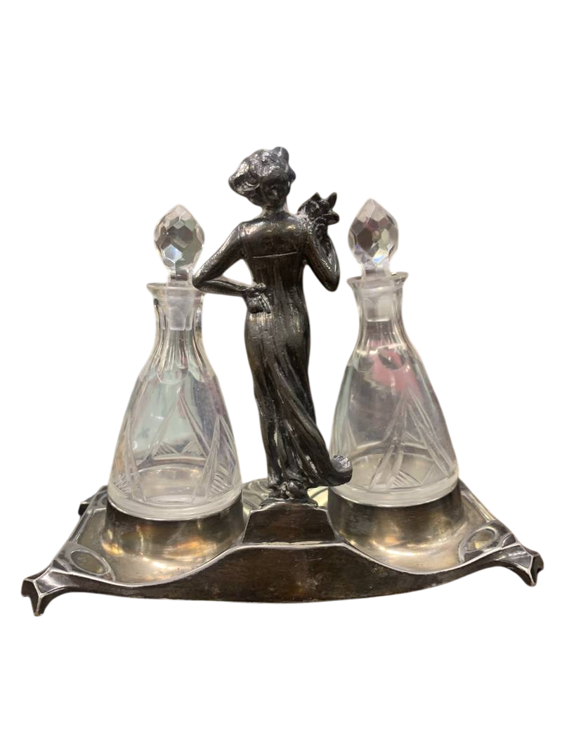 Set olio aceto con figurina Art Nouveau metallo argentato prob WMF