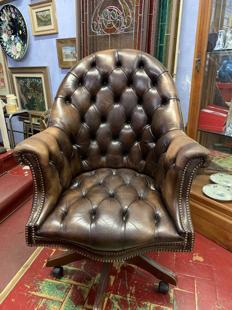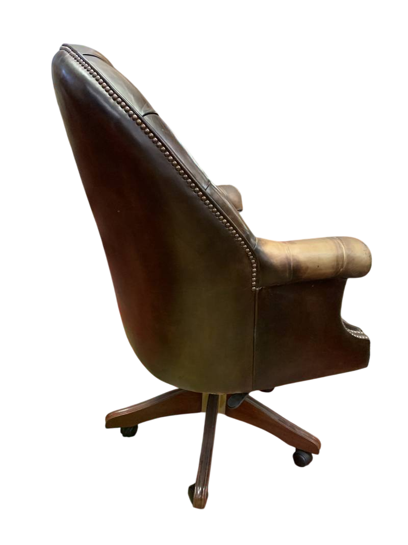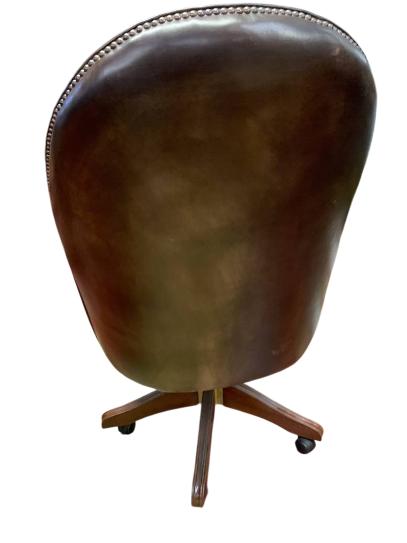 Poltrona da scrivania girevole inglese cuoio capitone’ color tabacco