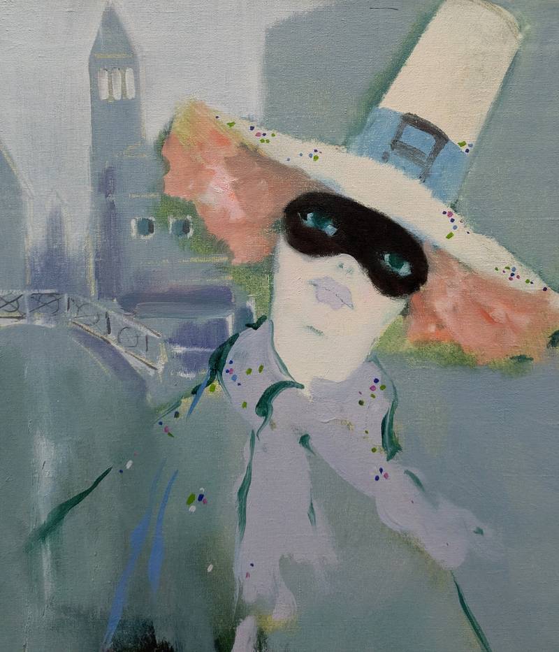 Opera dal titolo Carnevale finito, rappresenta una figura femminile in maschera che si aggira per i vicoli di una Venezia attraversata da una nebbia azzurra. Il corpo della figura è appena tratteggiato con rapide pennellate, mischiandosi con il paesaggio circostante.