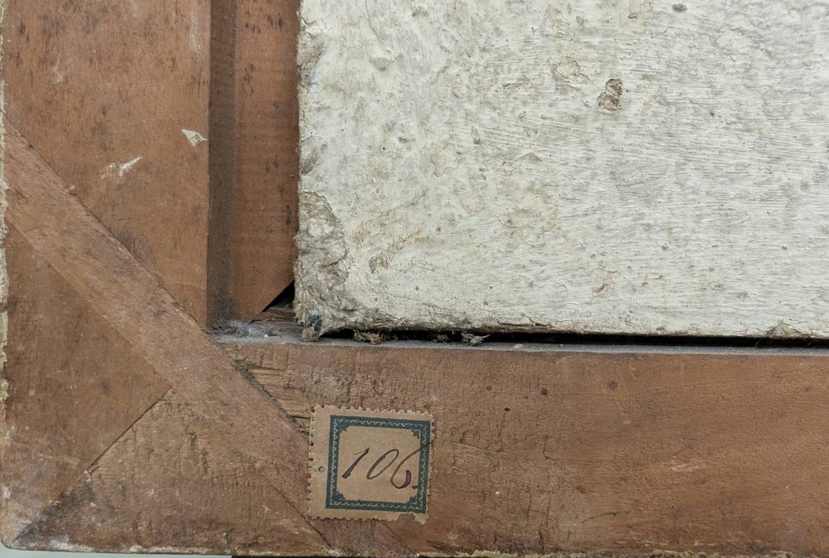 Al retro della cornice è presente una piccola etichetta recante il numero 106.