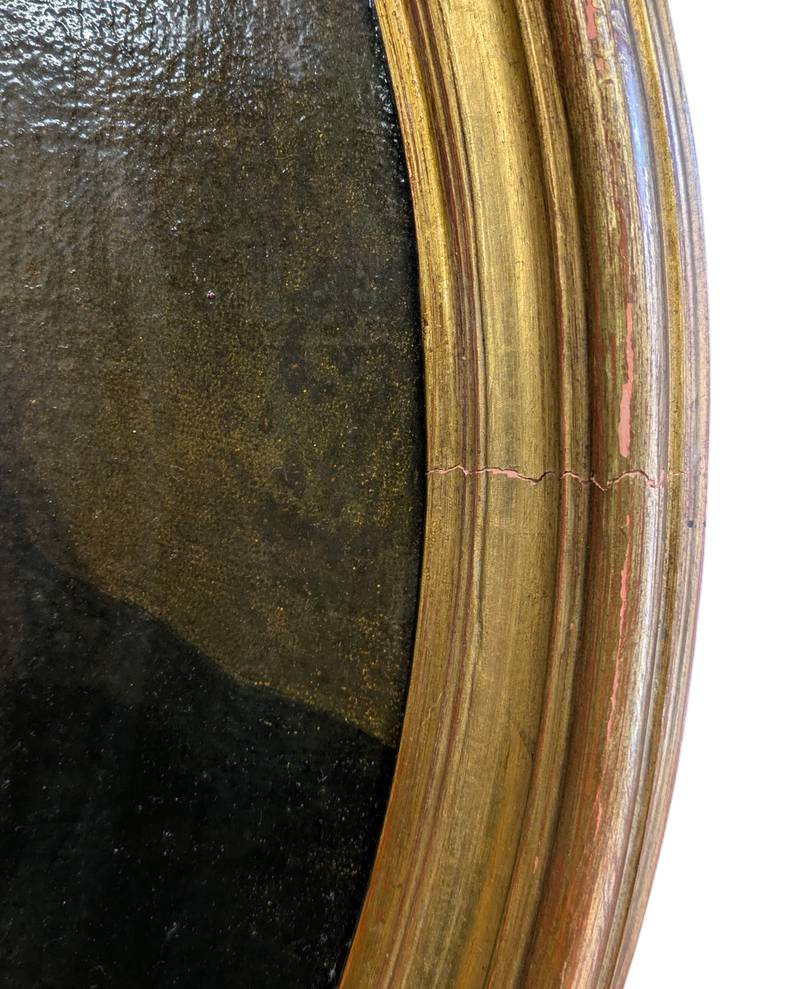 In ottime condizioni conservative come da fotografie, entro cornice in legno dorato. Si segnala un difetto nella parte superiore della tela e lievi mancanze relative alla doratura.