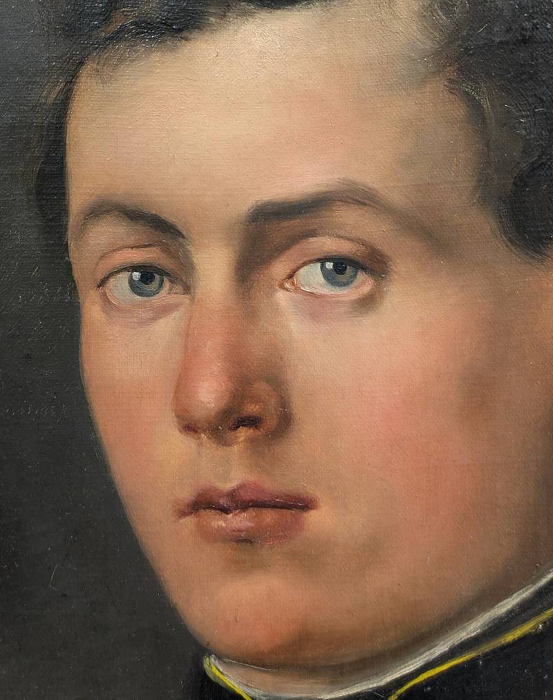 L’opera raffigura un giovane uomo in uniforme militare ornata da nappe dorate sulle spalle.