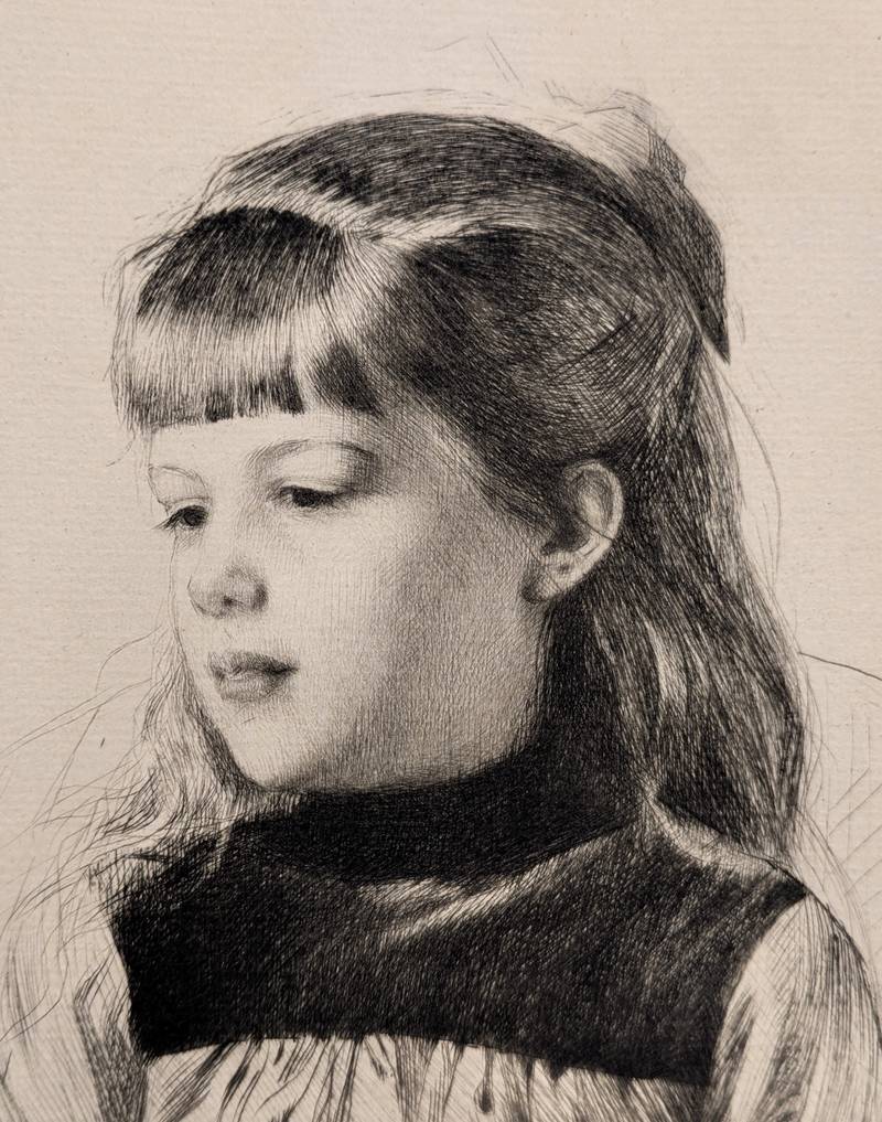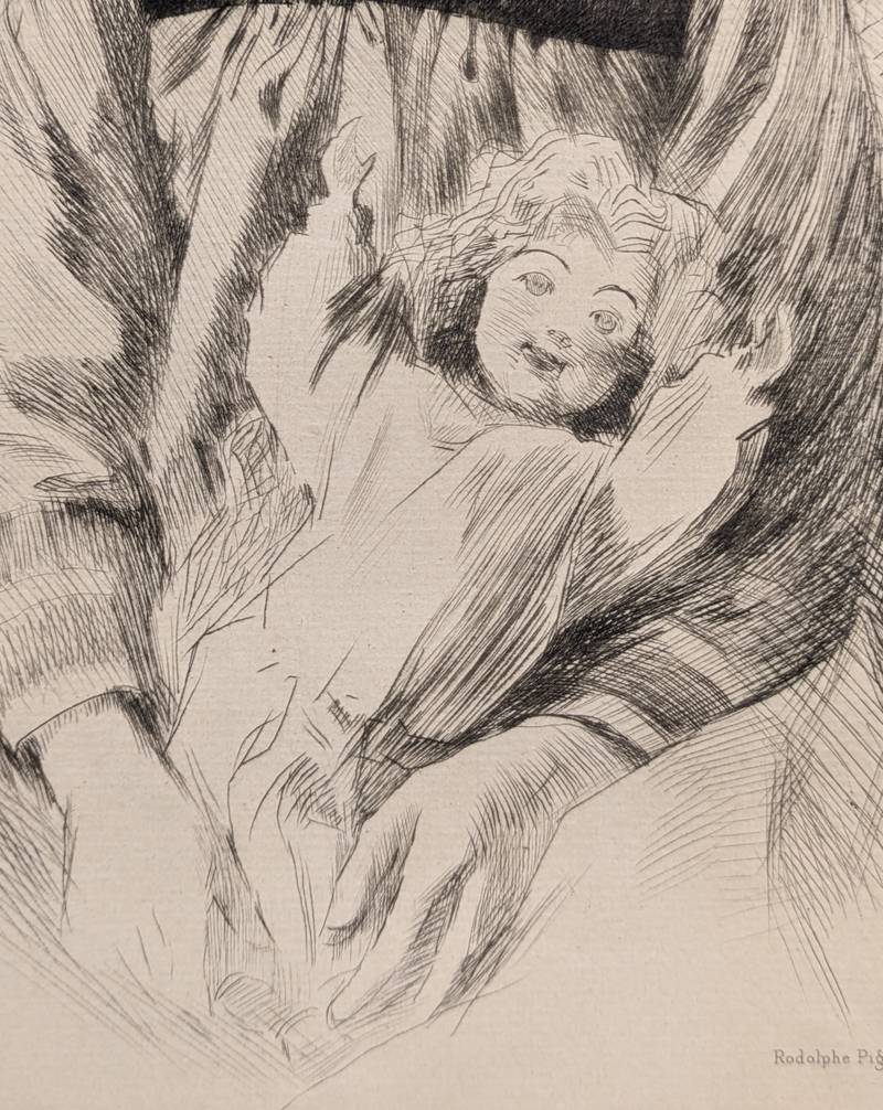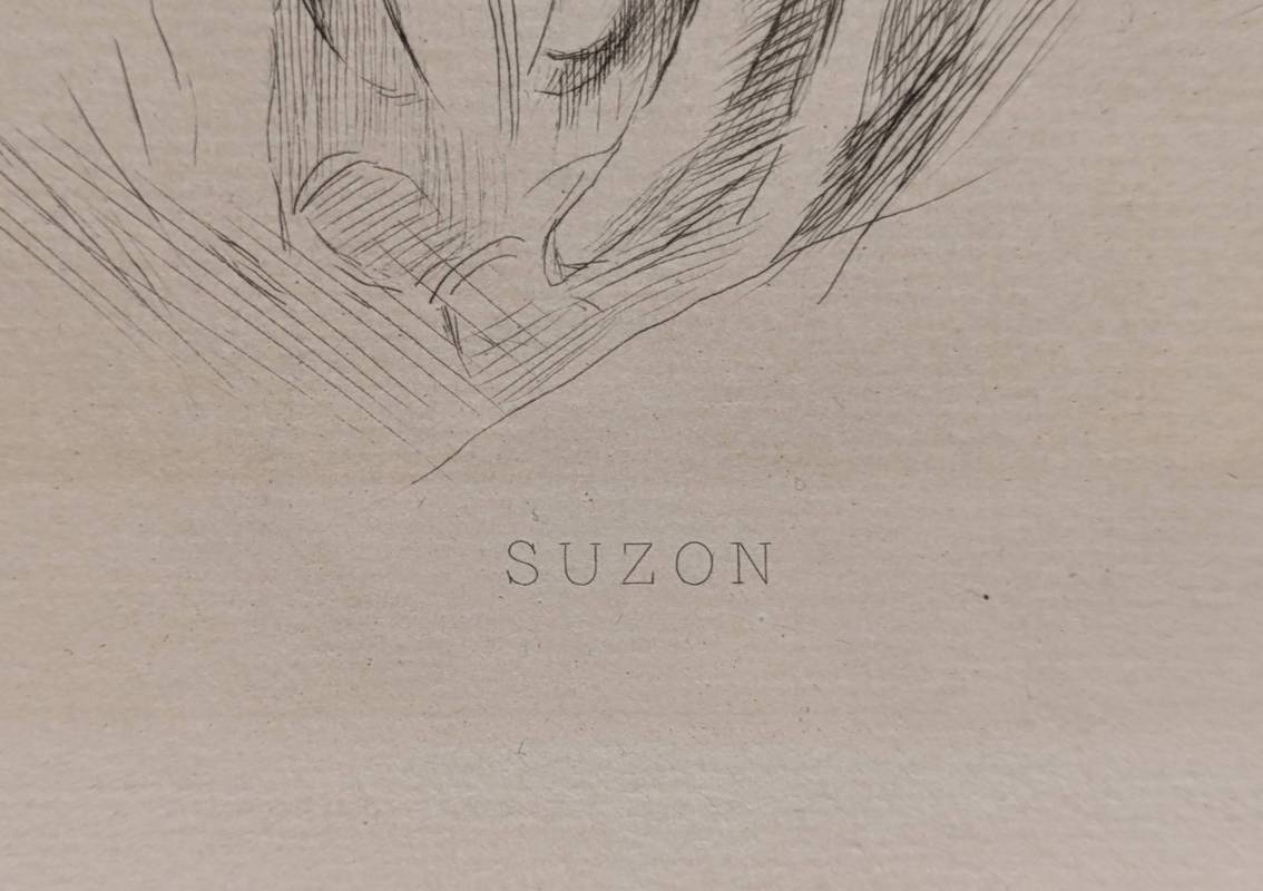 L’opera raffigura una bambina con una bambola tra le braccia. Il volto è delineato con grande attenzione al disegno e al chiaroscuro mentre quest’ultimo si disperde ai margini del ritratto, concentrando l’attenzione sul viso della bimba. La stampa reca al centro il titolo Suzon, che si presume essere il nome della bambina ritratta. Opera pubblicata su L’Art, come indicato in basso a sinistra.