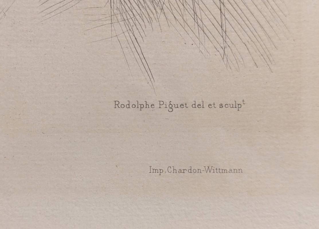 Incisione ad acquaforte firmata a destra Rodolphe Piguet (Ginevra, 1840-1915), pittore svizzero.