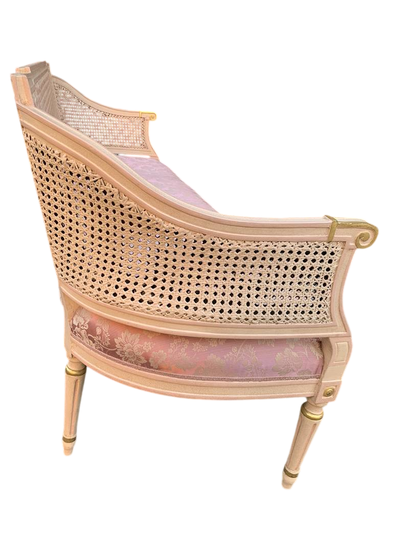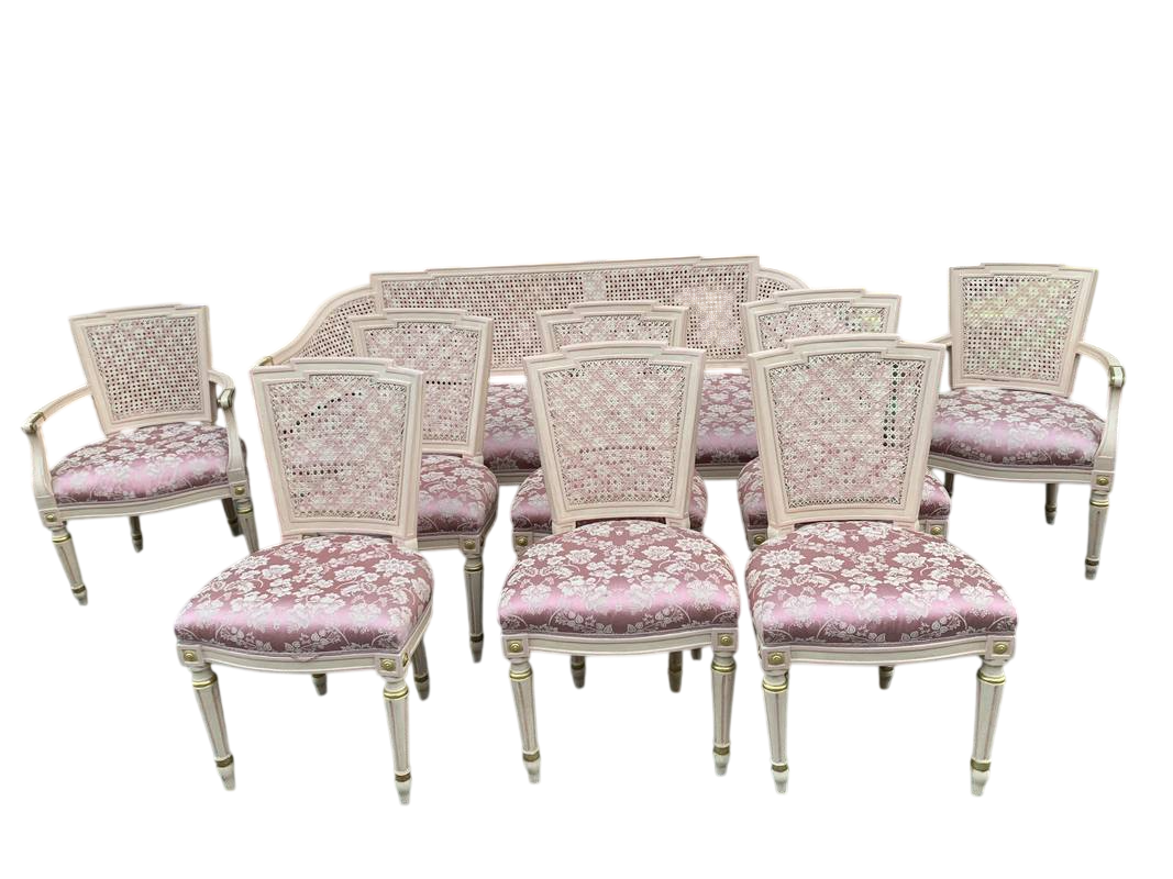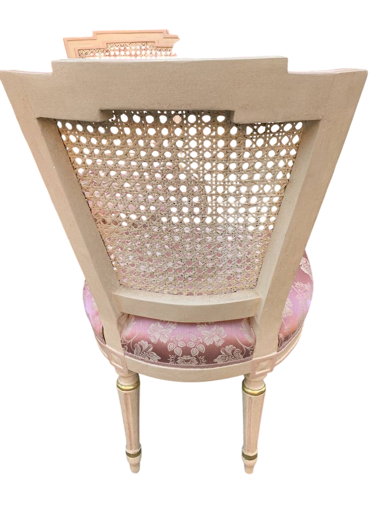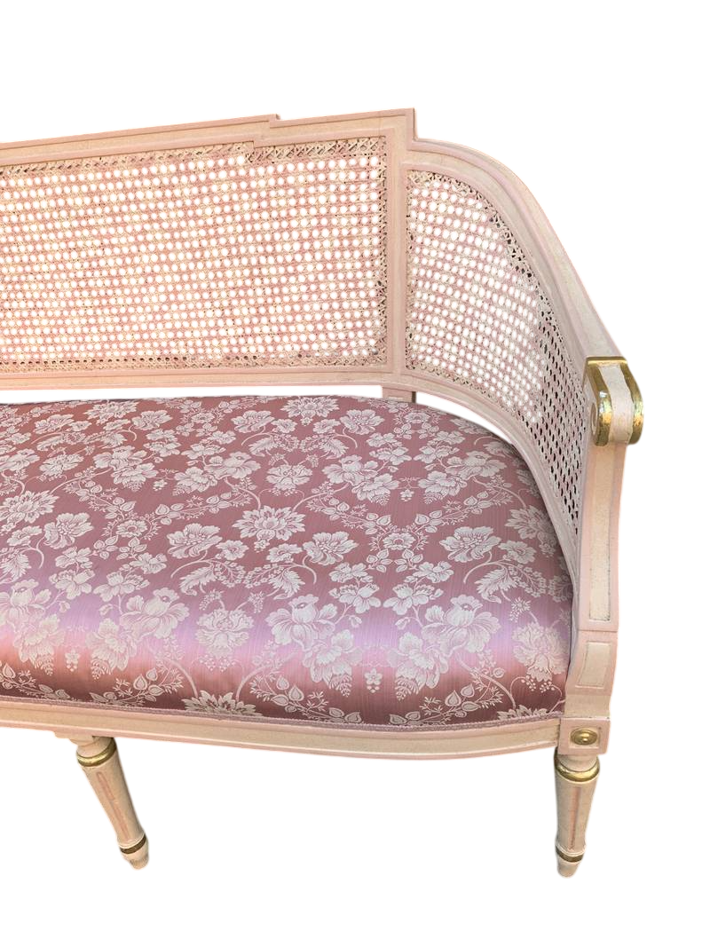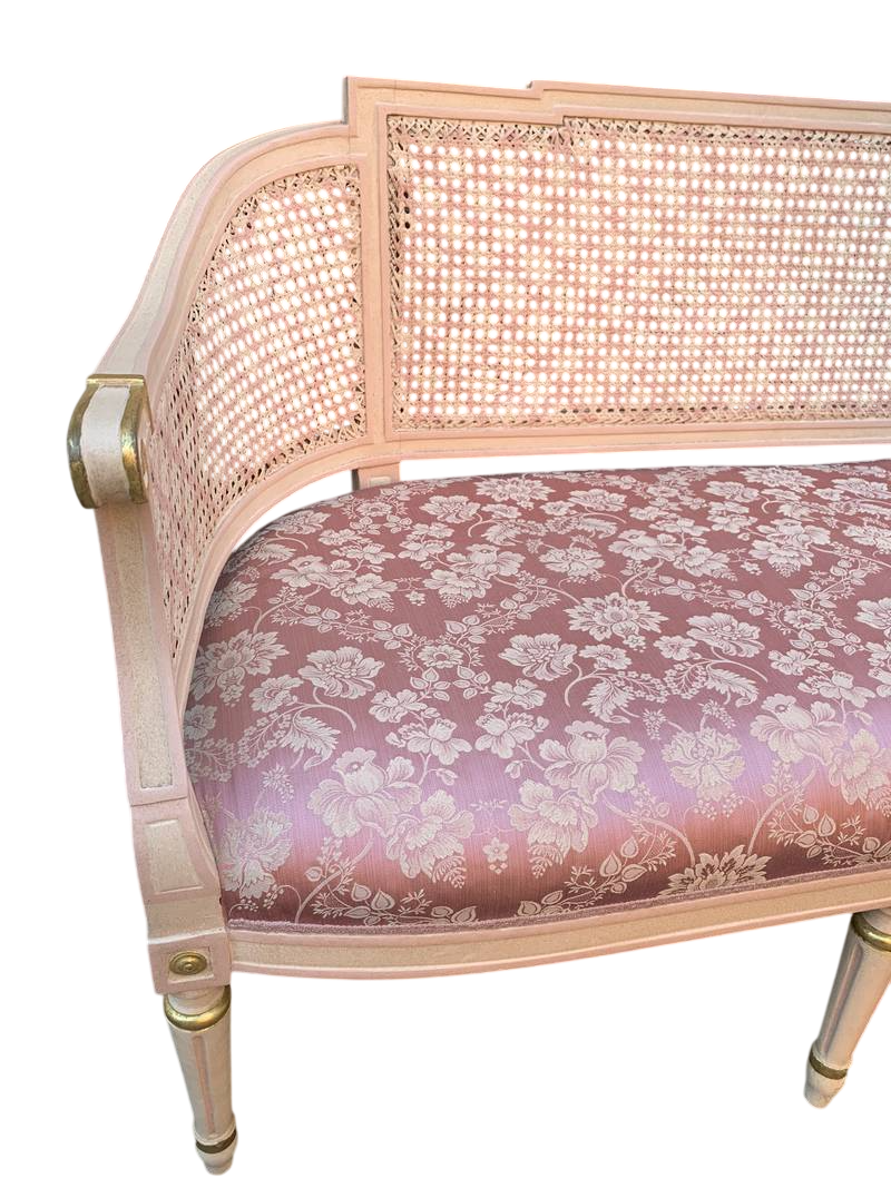 Salotto in stile Luigi XVI legno intagliato e paglia di Vienna lacca rosa pastello primi del XX secolo