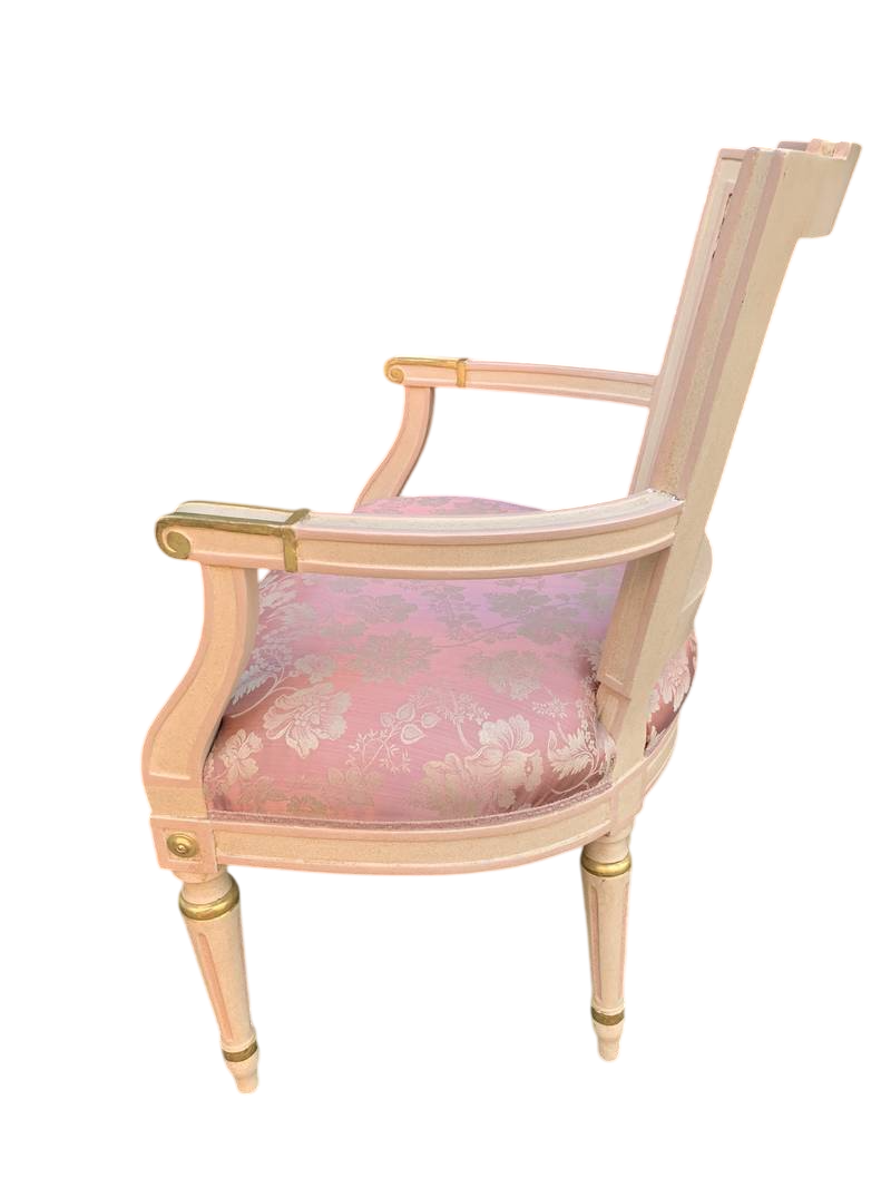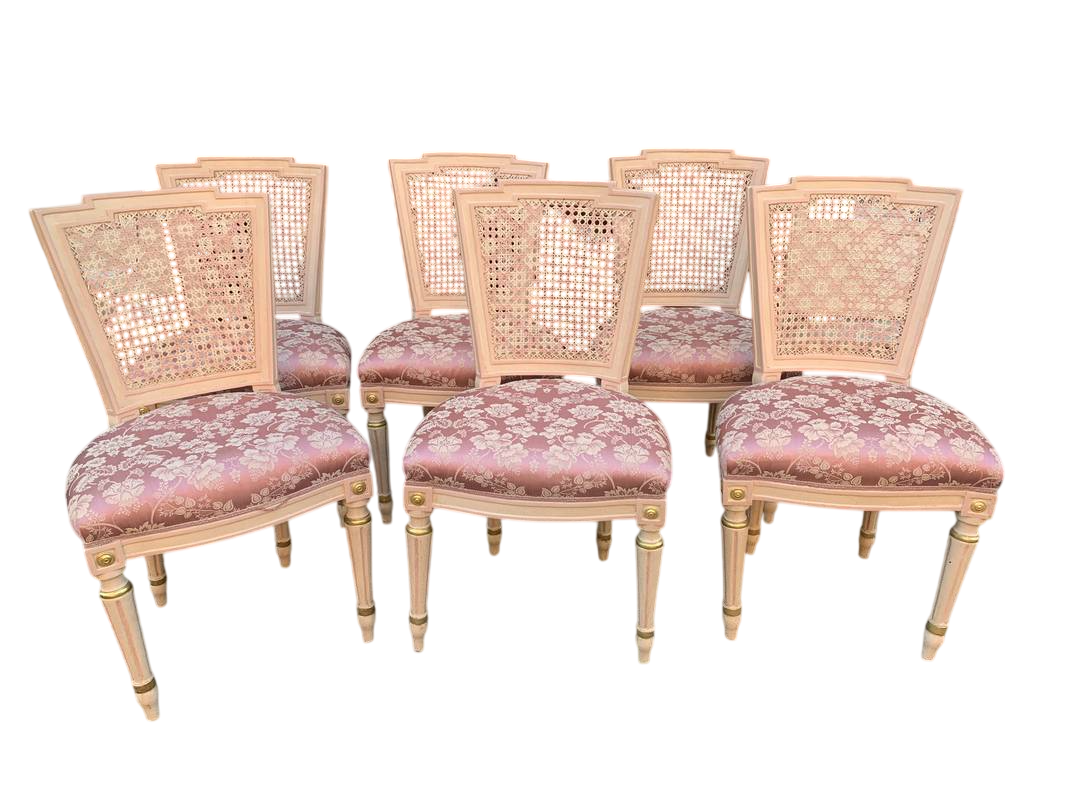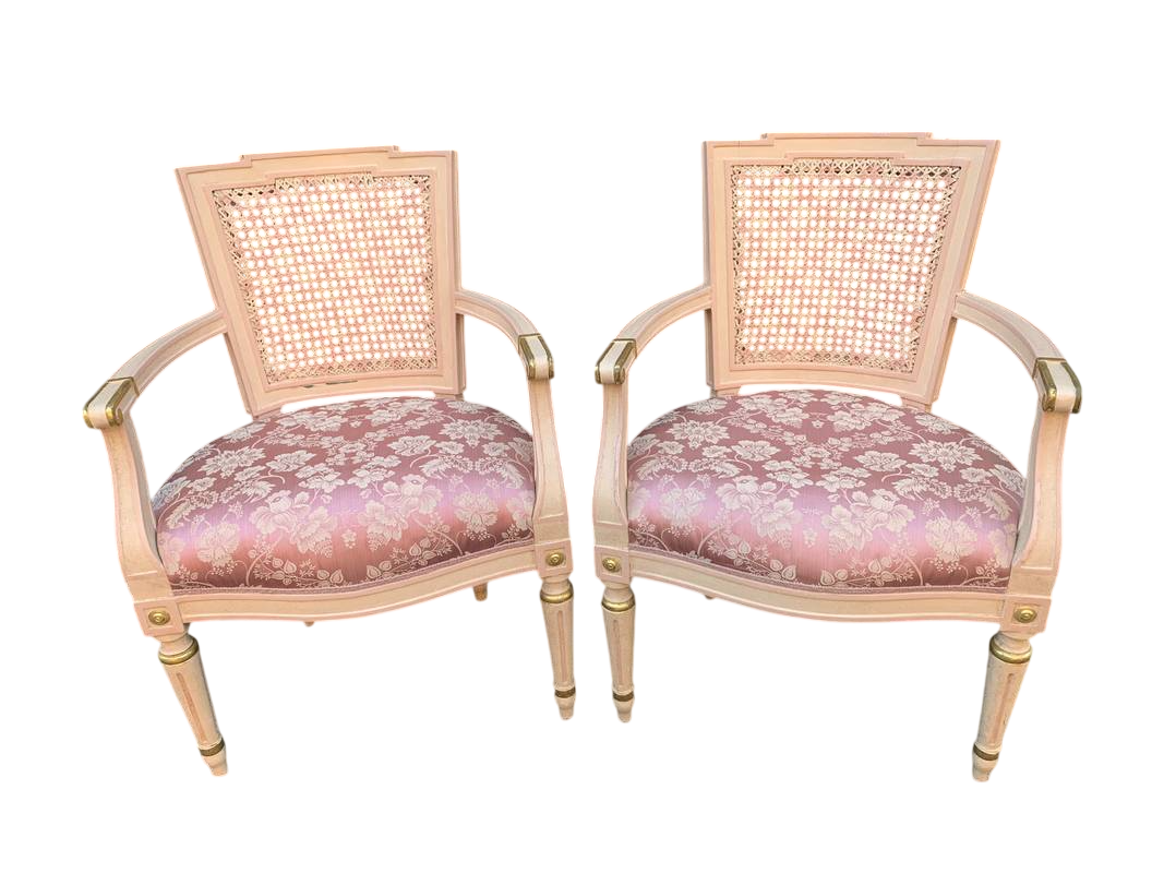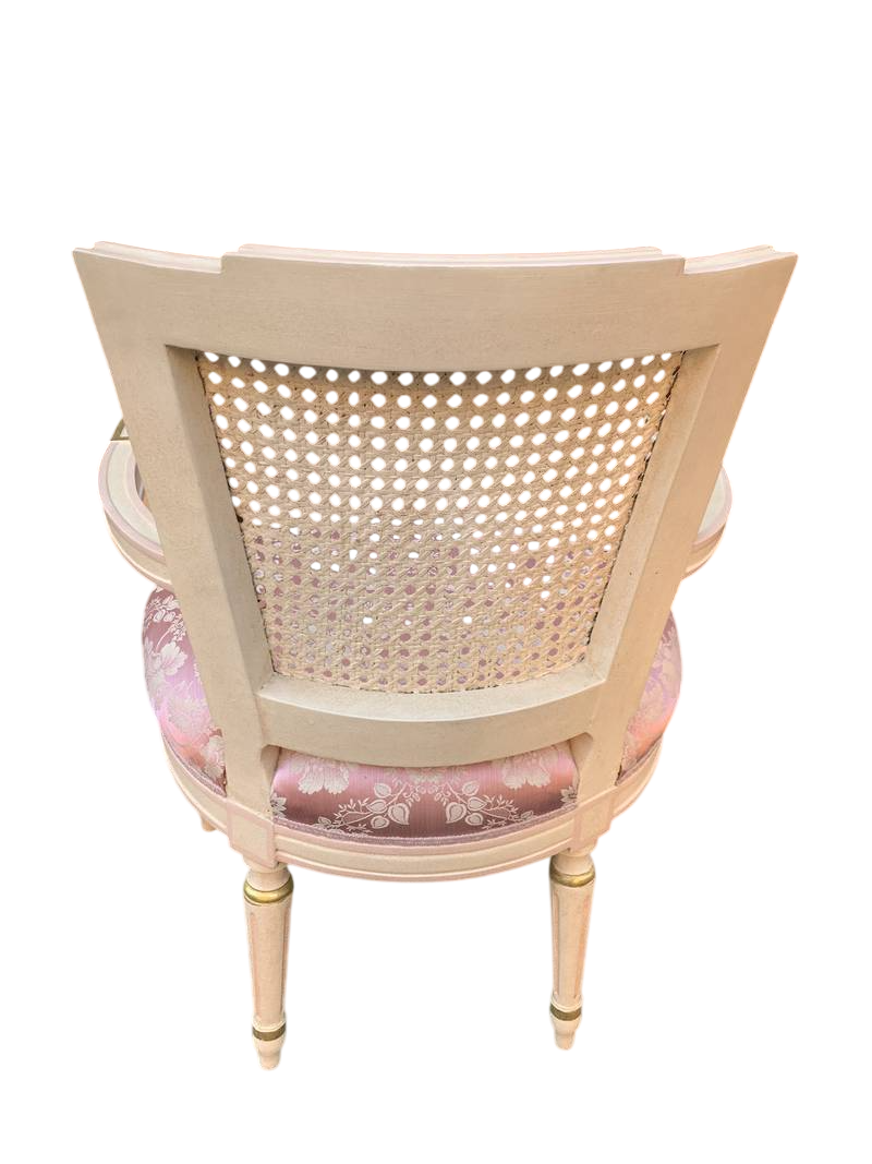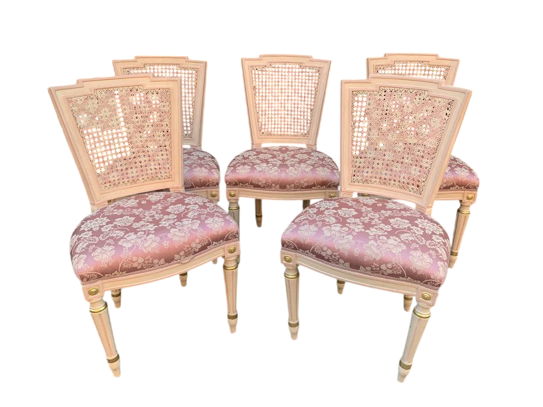 Salotto in stile Luigi XVI legno intagliato e paglia di Vienna lacca rosa pastello primi del XX secolo