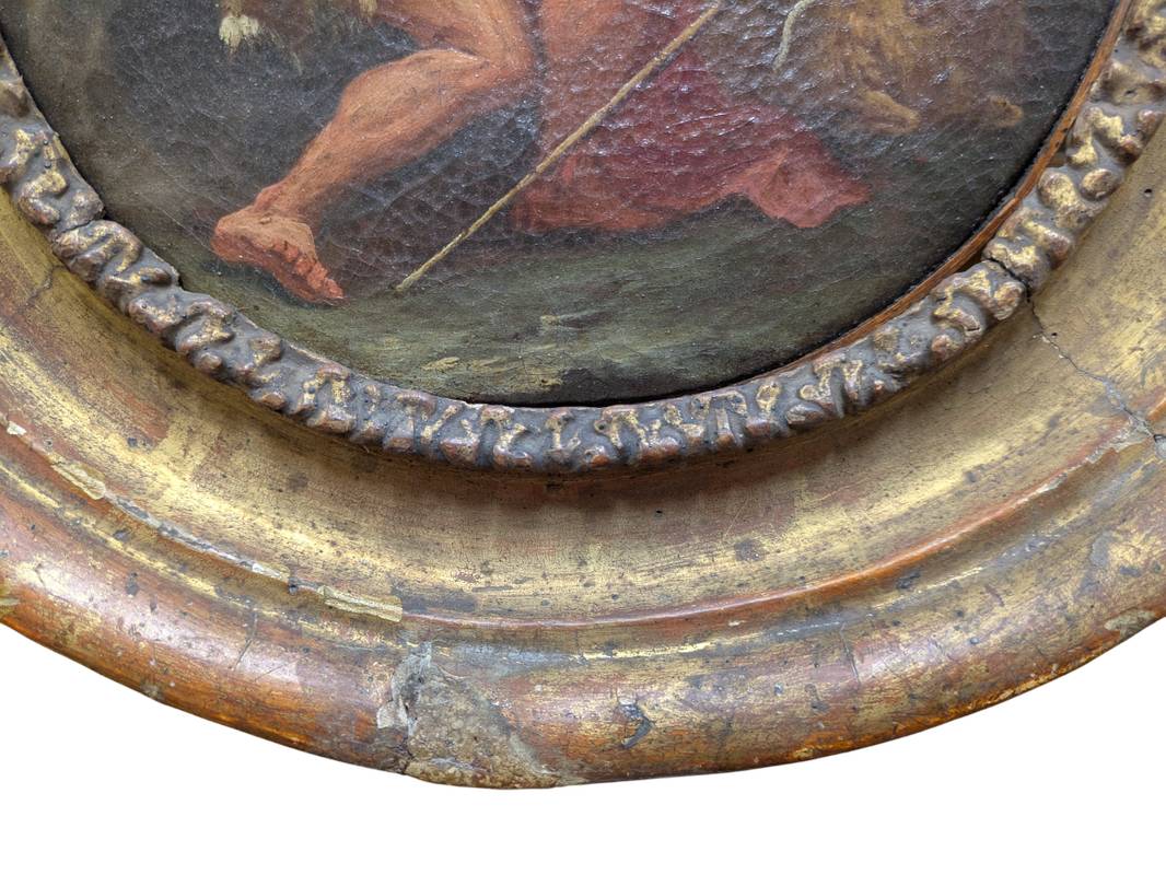 In ottime condizioni conservative come da fotografie, entro cornice in legno dorato. Si segnalano alcuni difetti del tempo e mancanze nella cornice.