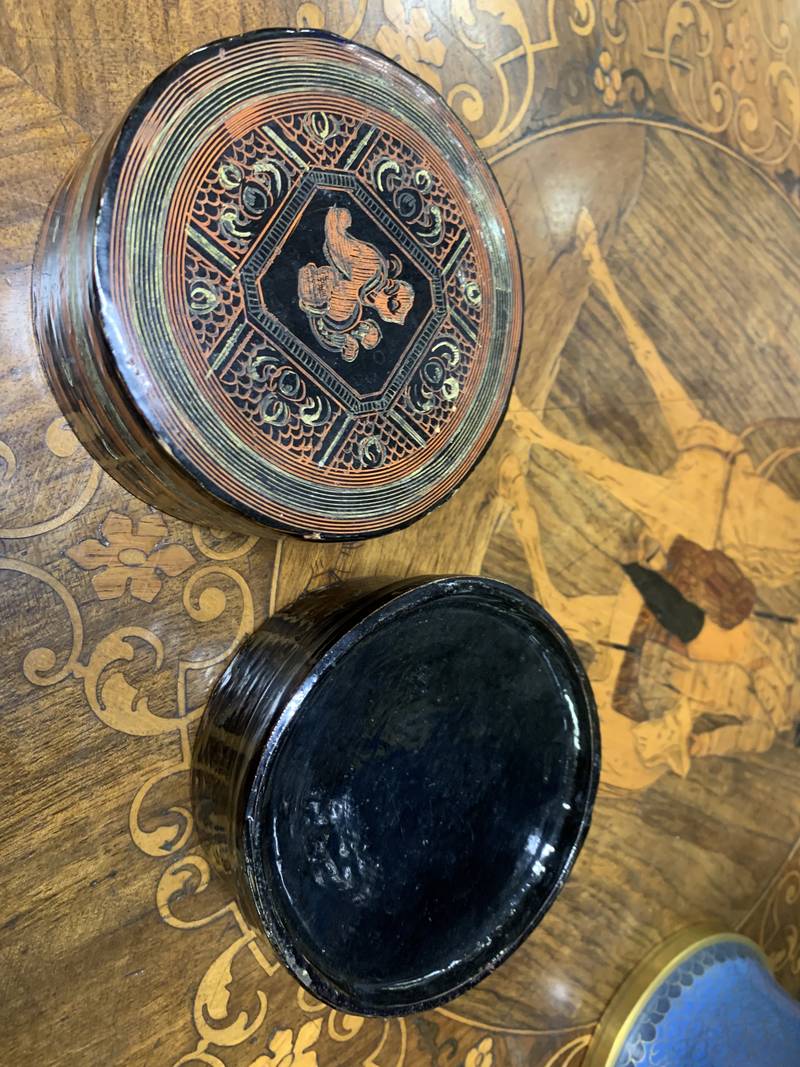 Scatola tonda birmana betel laccata Epoca XX secolo