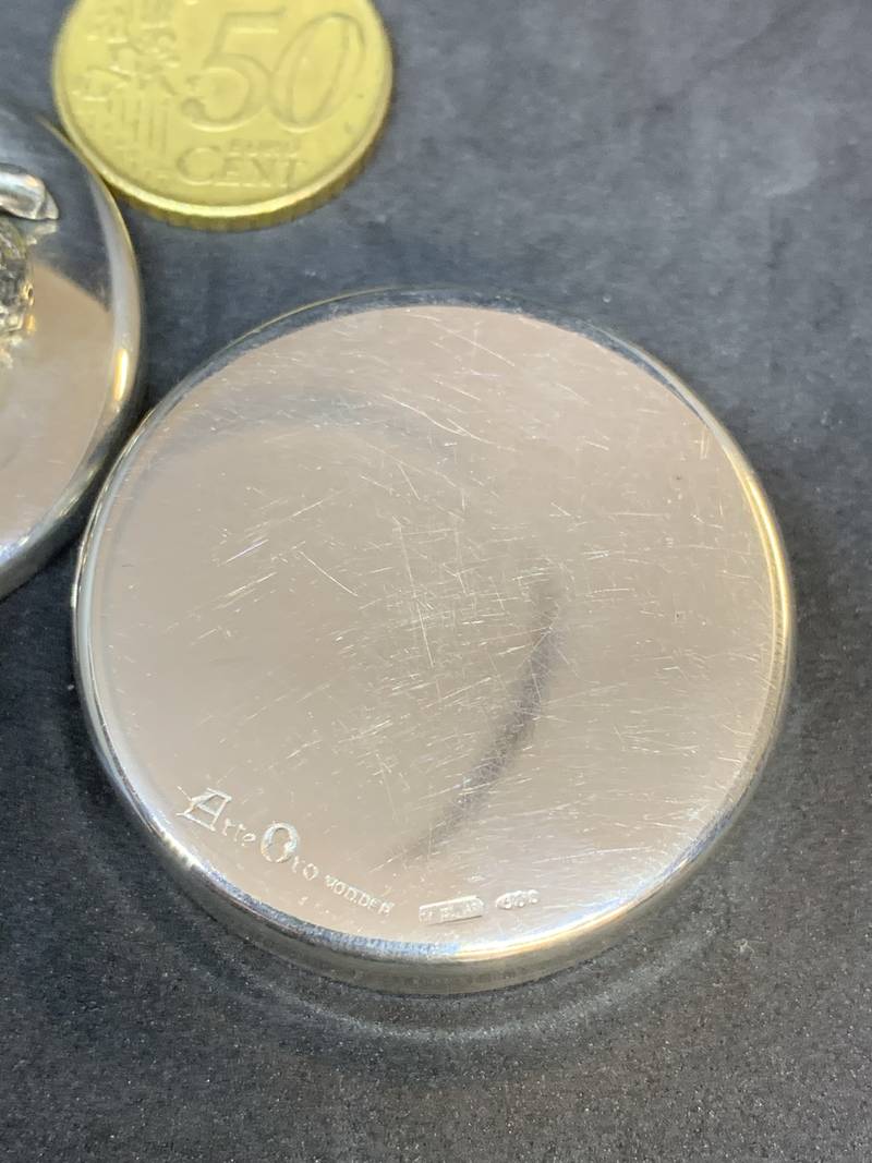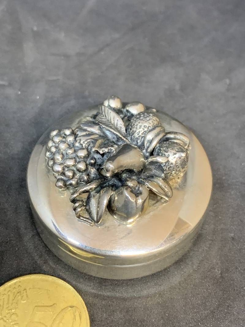 Scatolina portapillole argento tonda con cesta di frutta microfusione Arte Oro argento 800