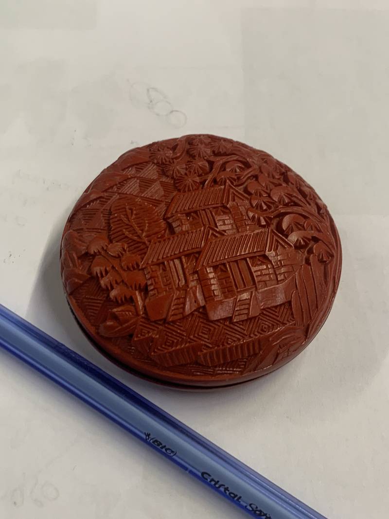 con raffigurazione di paesaggio sul coperchio Cina inizi del XX secolo