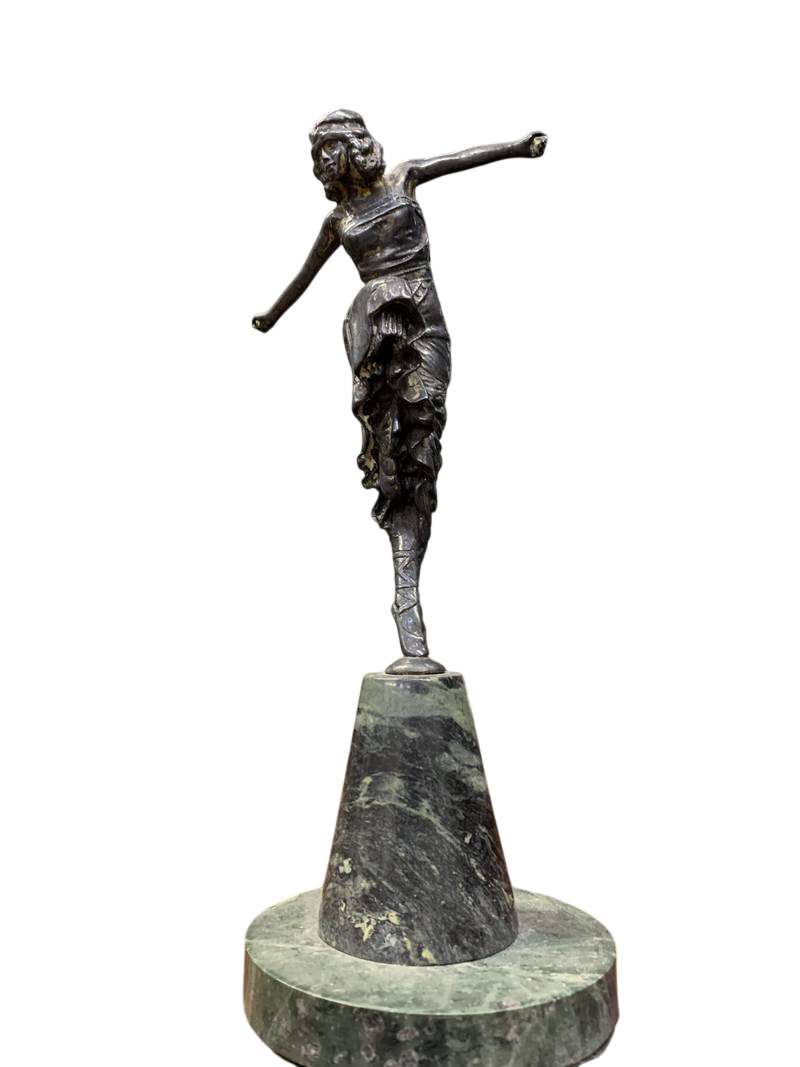 Scultura ballerina Art Deco’ Art Nouveau anni 20 30 su base in marmo