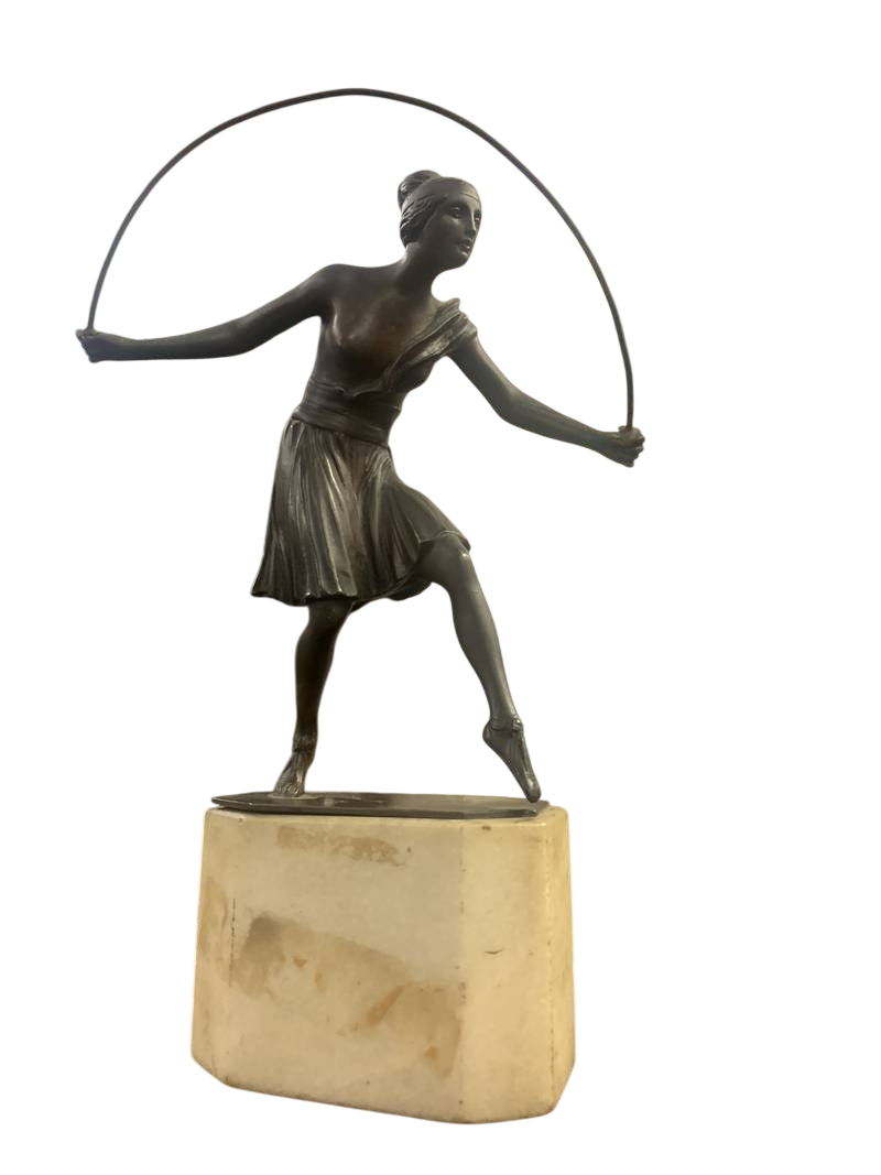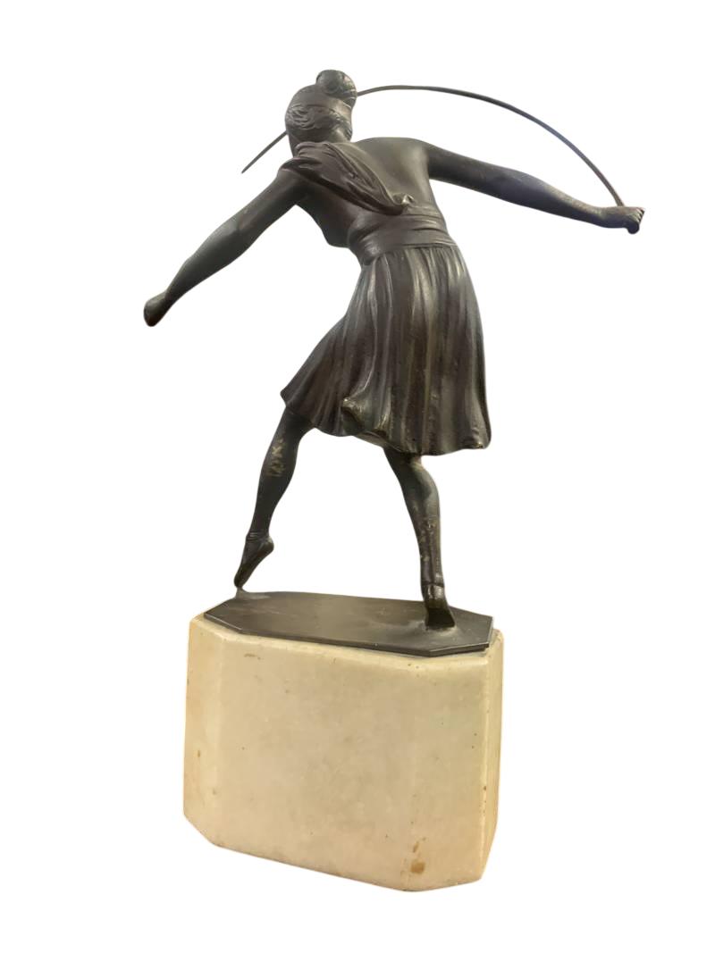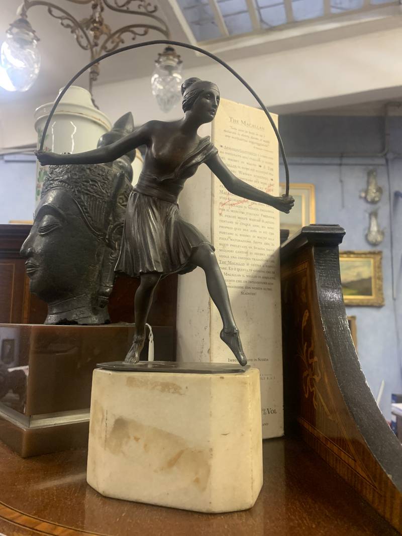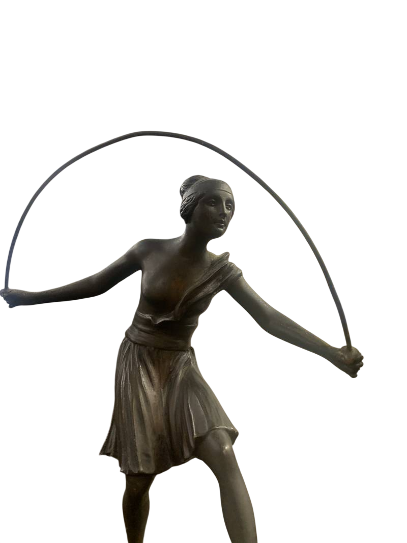 Scultura ballerina con cerchio Art Deco’ Art Nouveau anni 20 30 su base in marmo