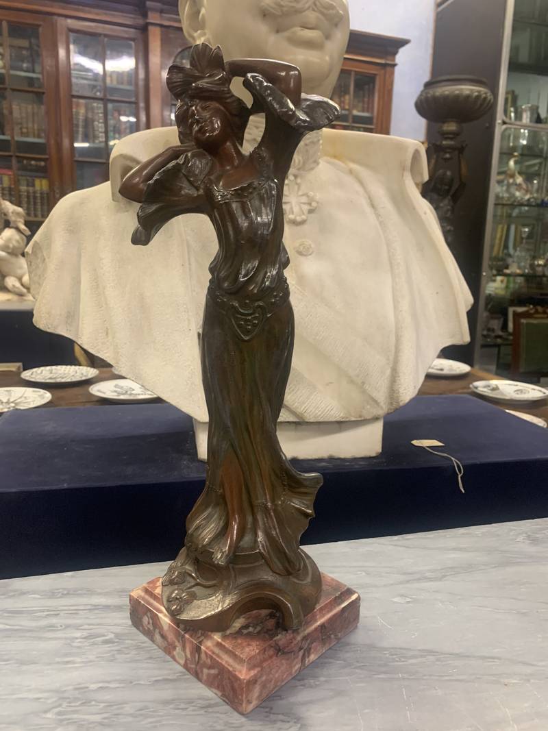 Scultura figurina in antimonio Liberty purissimo inizi del 900