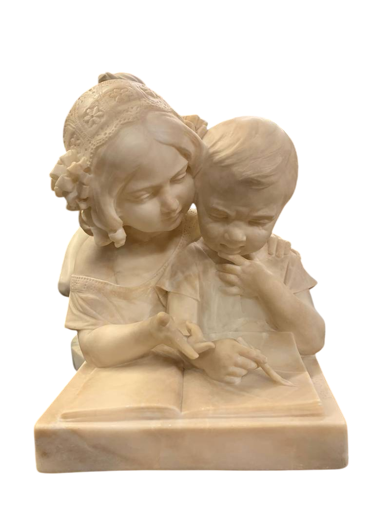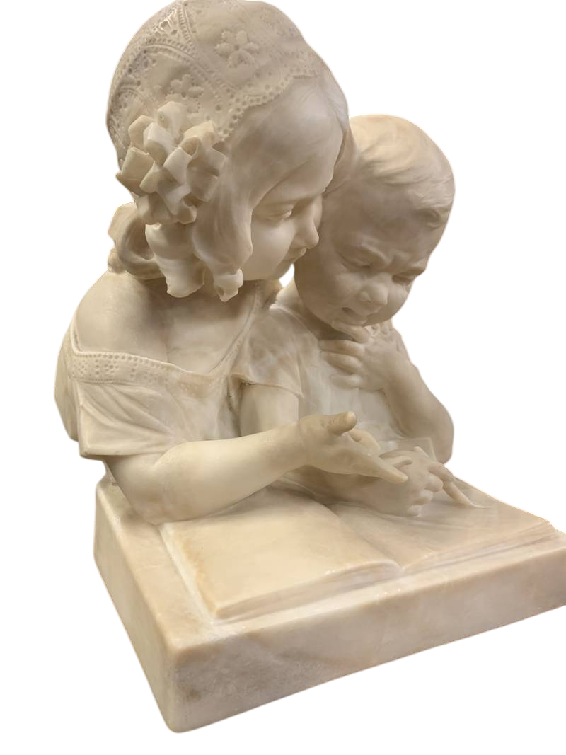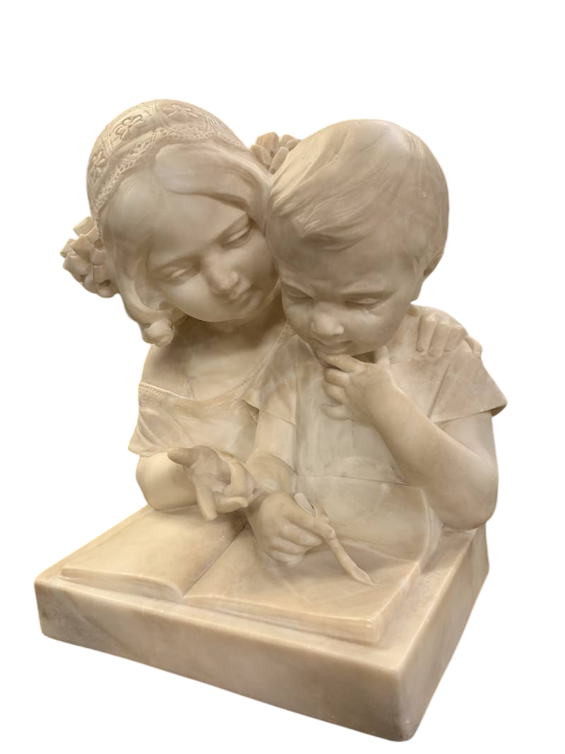 Scultura marmo alabastro bimbi Giuseppe Gambogi (Pisa, 1862 – Firenze, 1938) inizi del XX sec