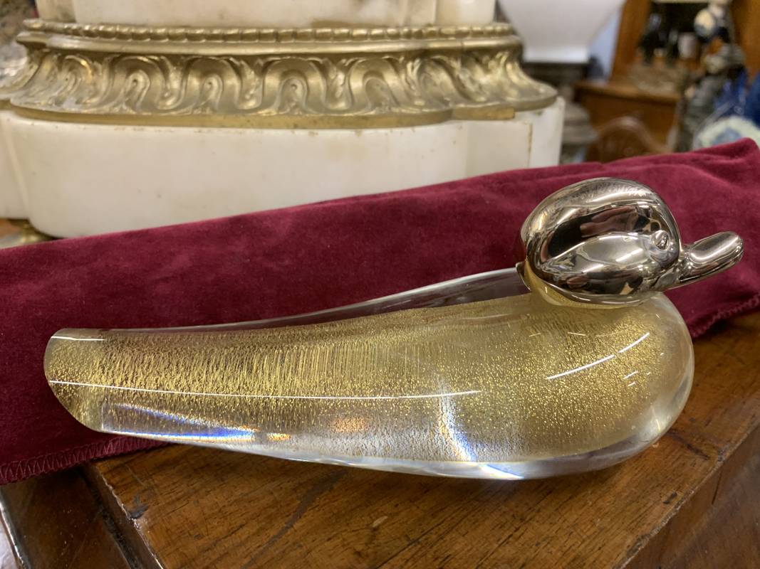 anatra papera in vetro arte MURANO con inclusioni in oro