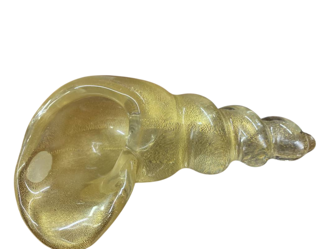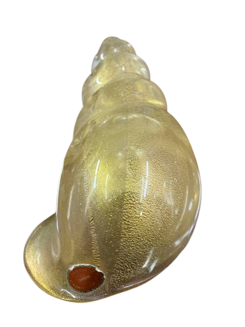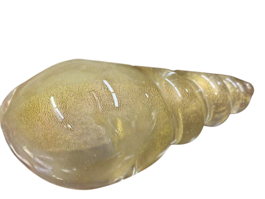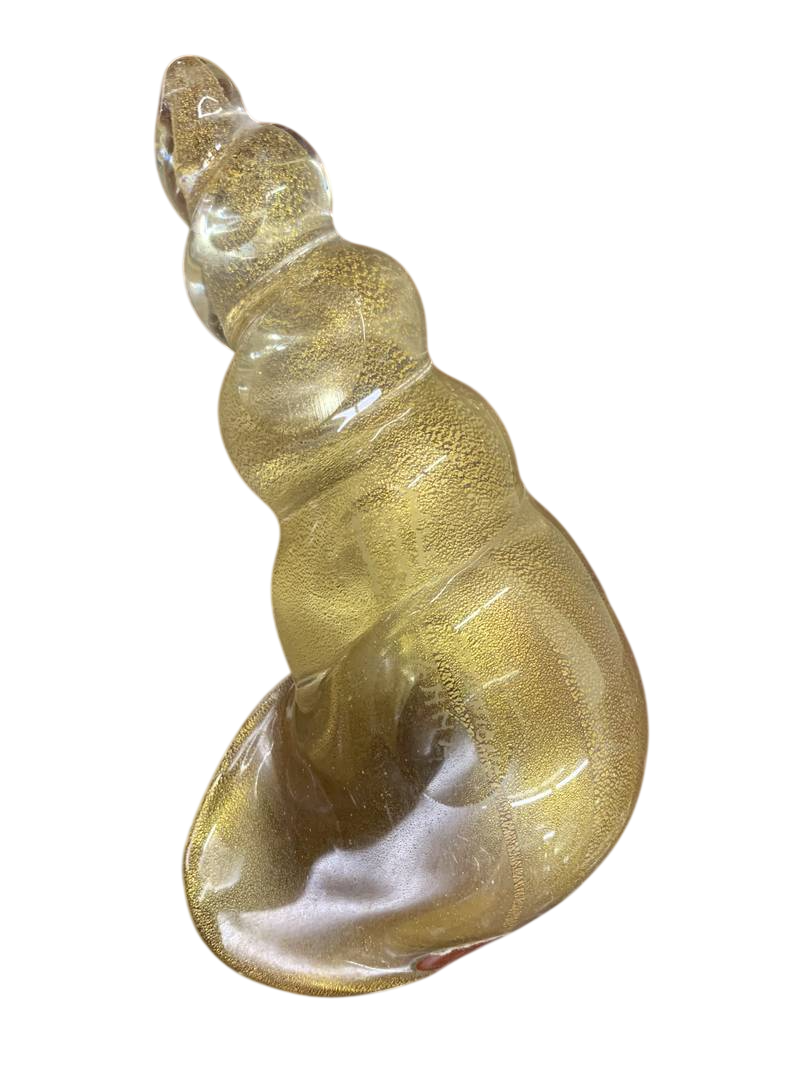 scultura a forma di conchiglia in vetro di Murano con inclusioni dorate