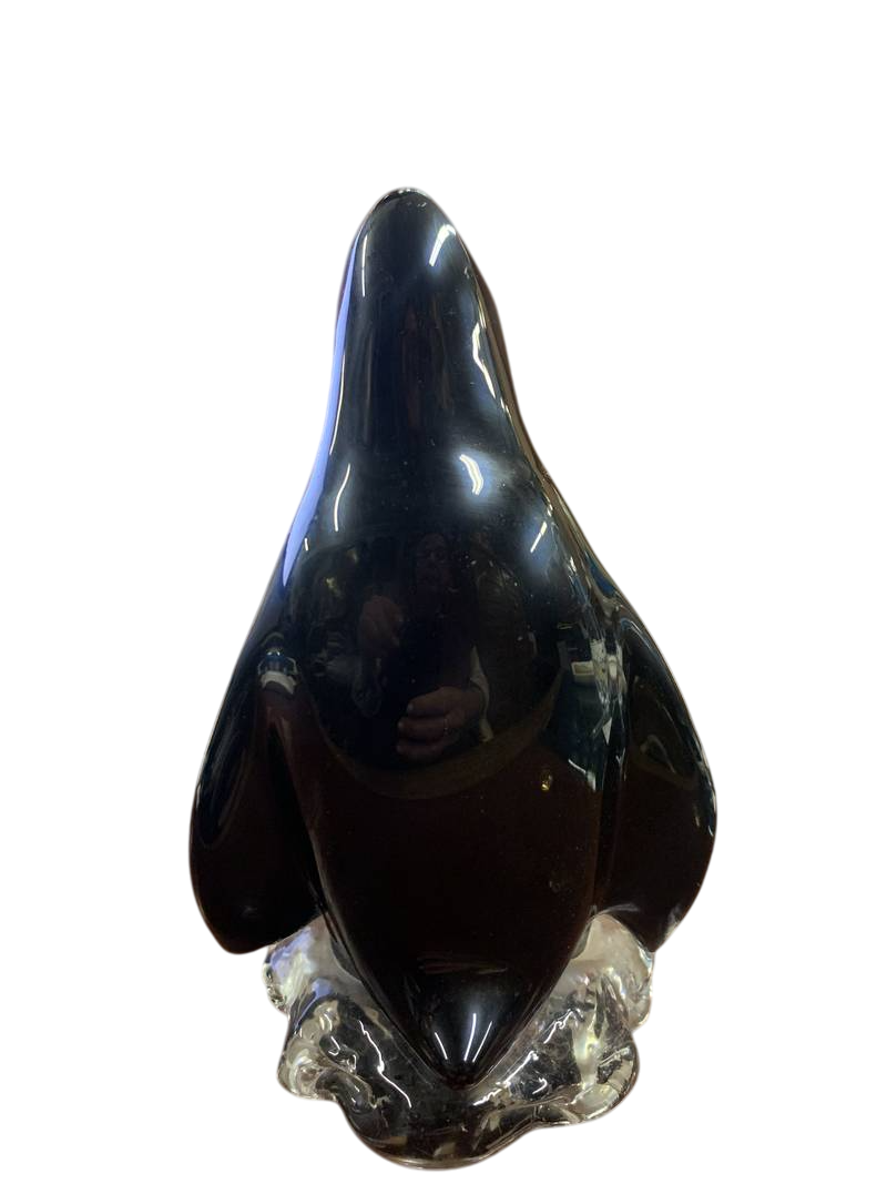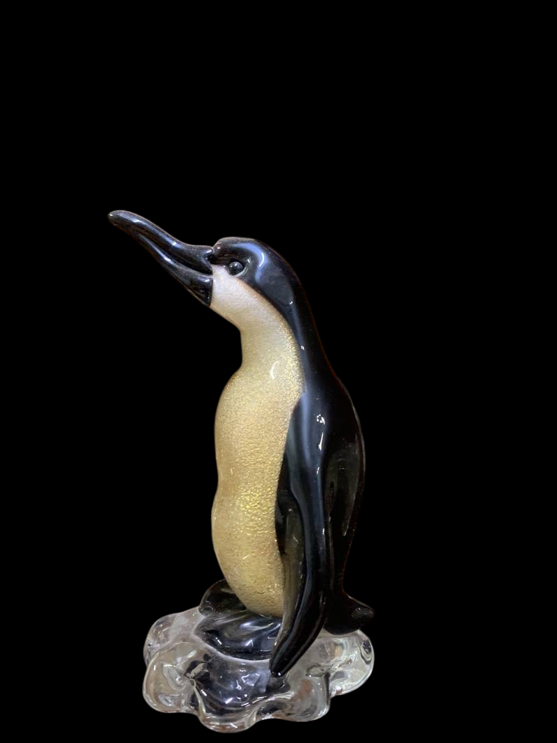Scultura Murano Pinguino in vetro sommerso con inclusioni oro attrib Alfredo Barbini