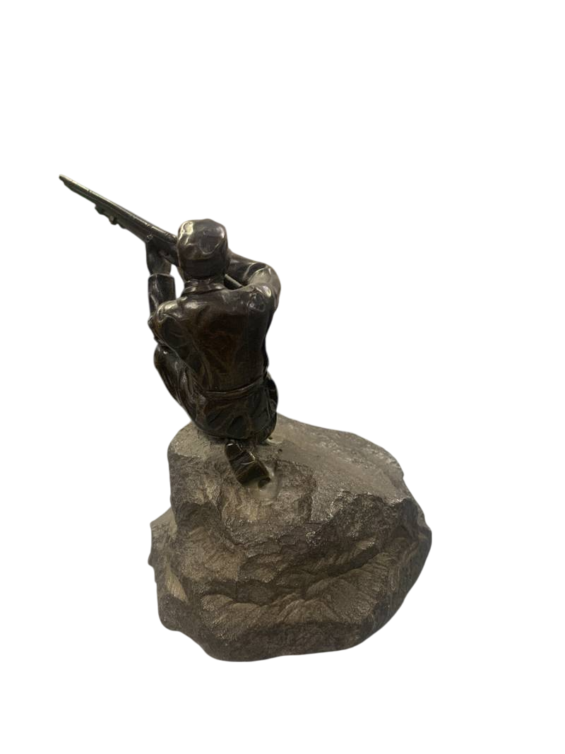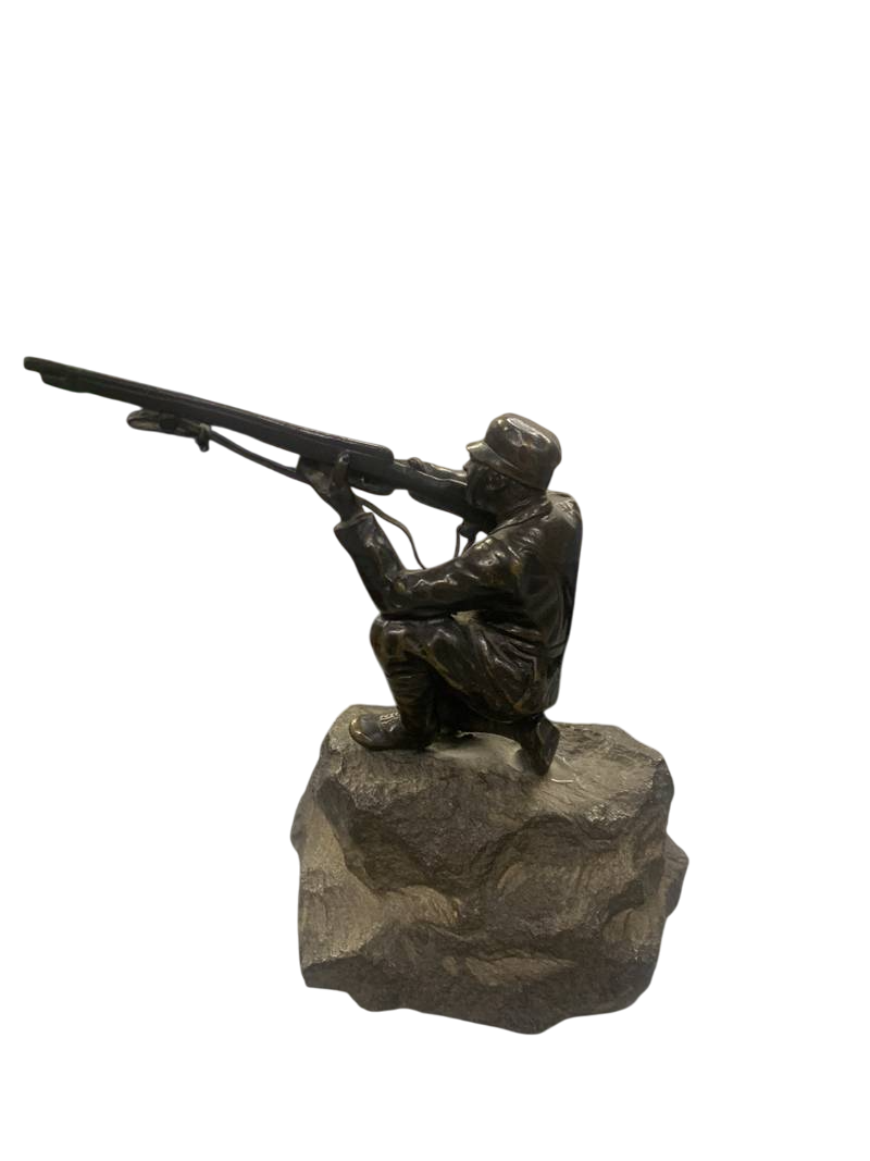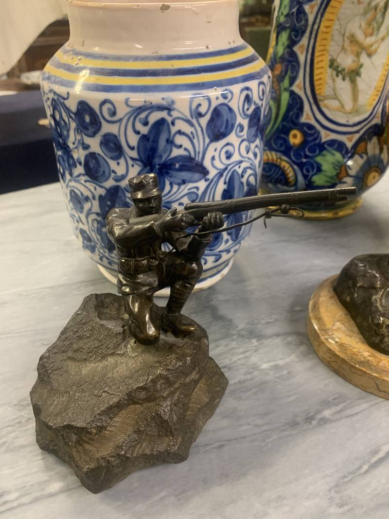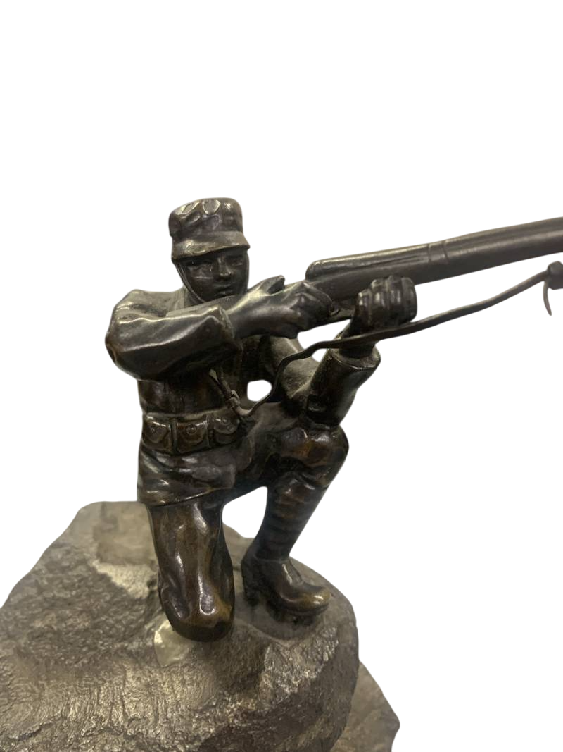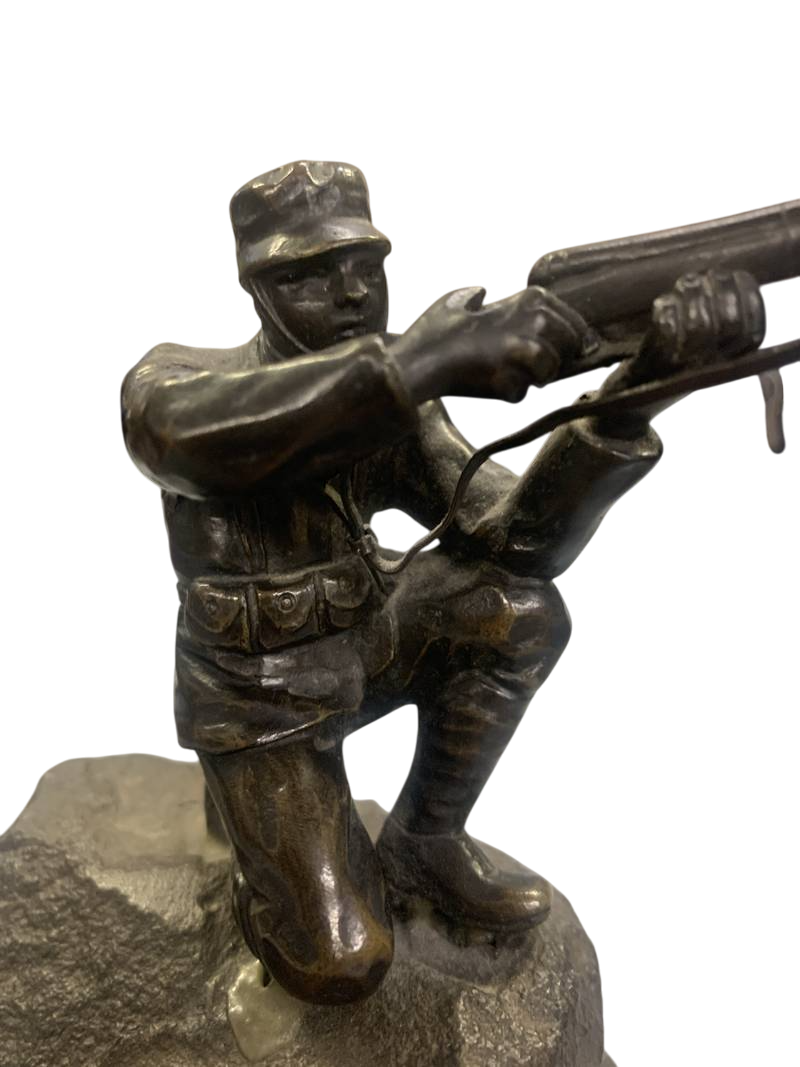 Scultura piccolo bronzo soldato su pietra della prima meta’ del XX secolo