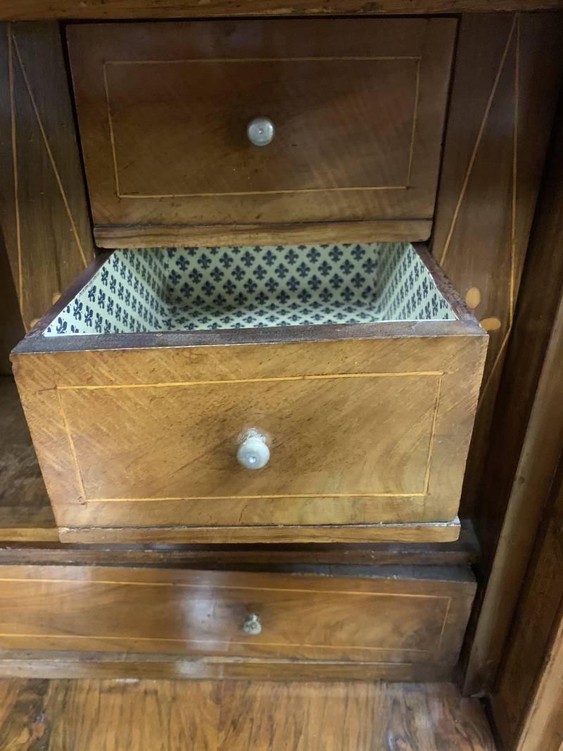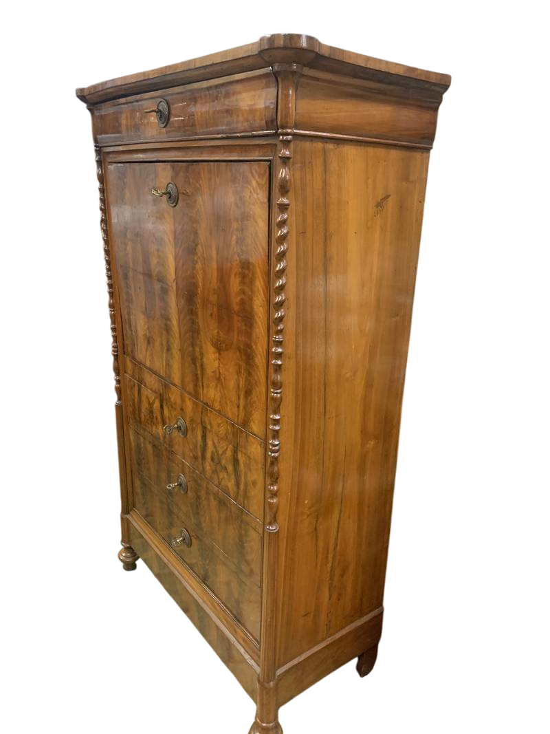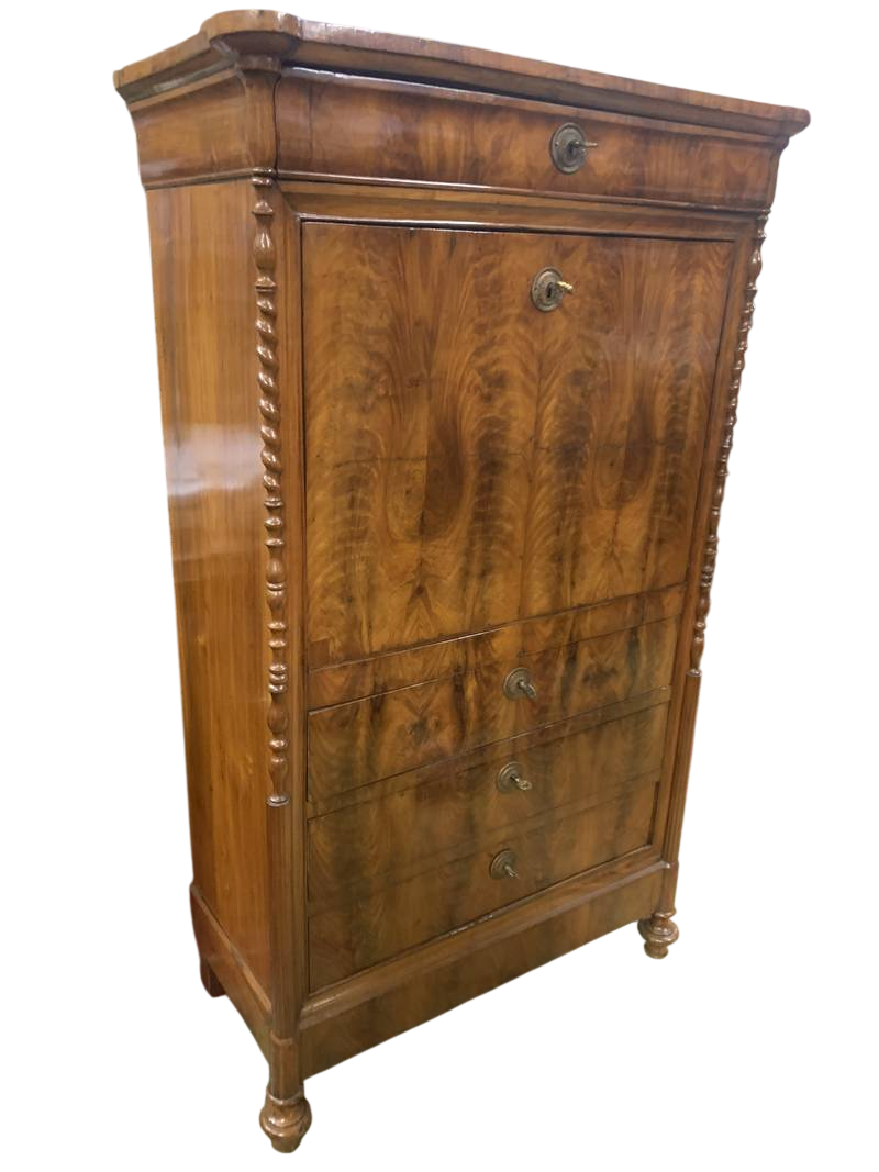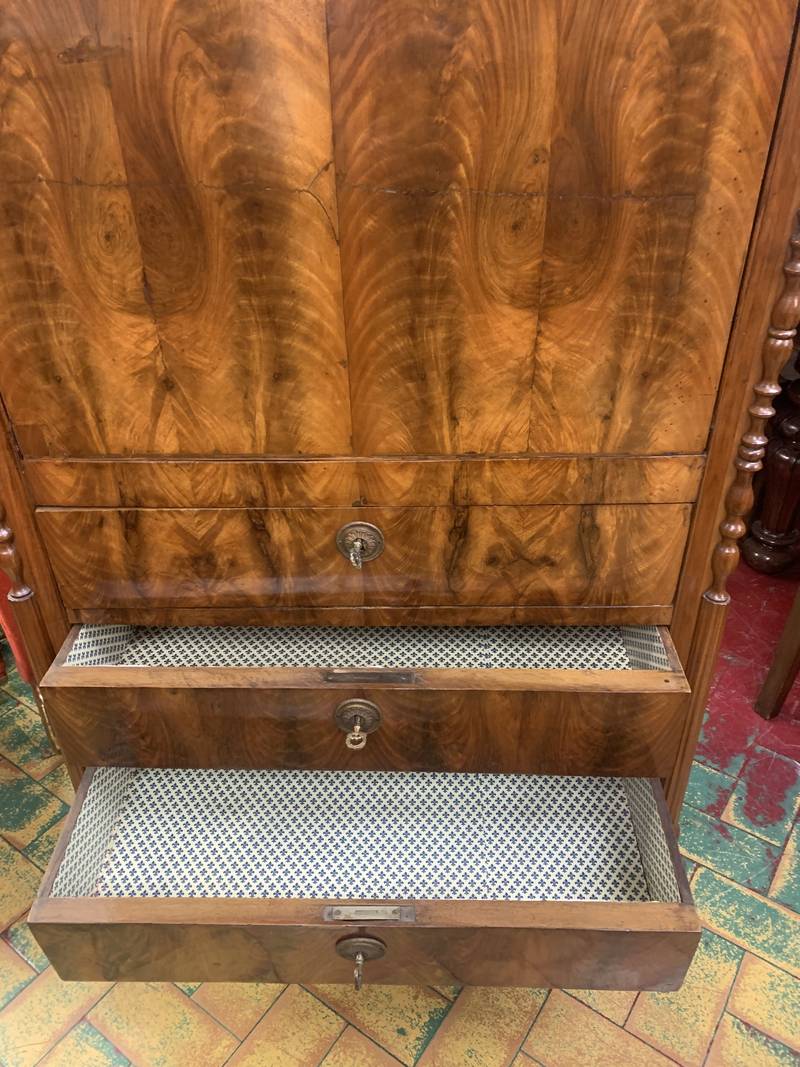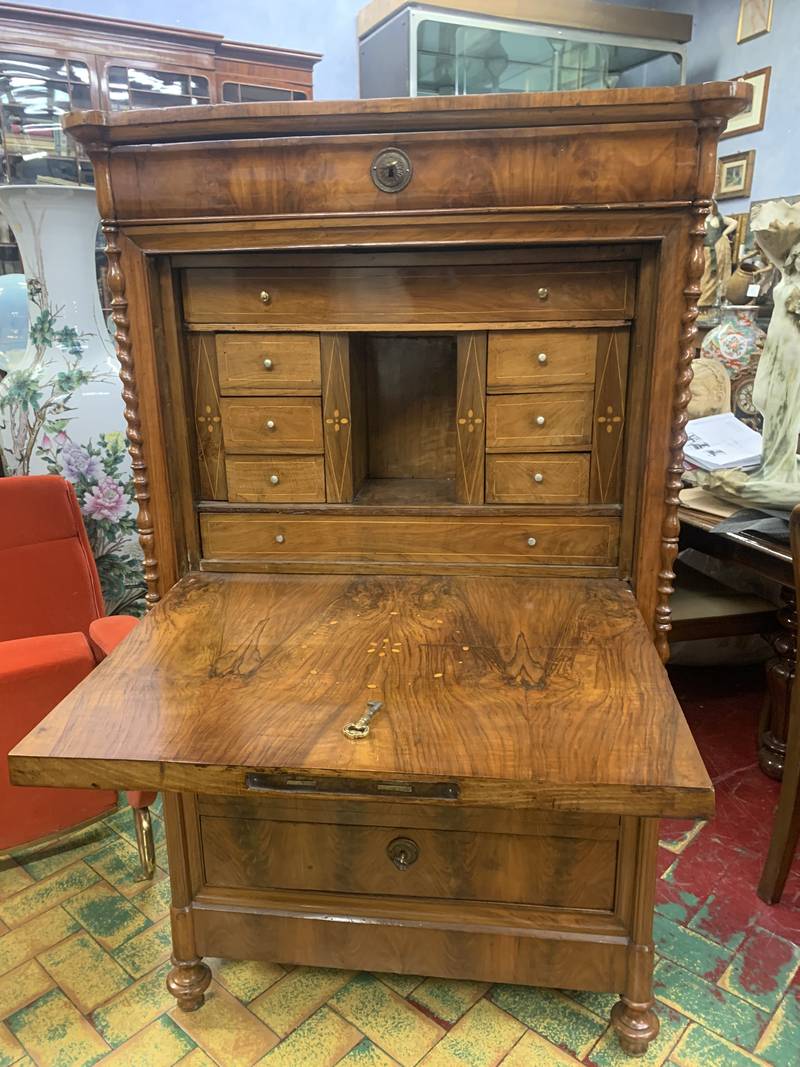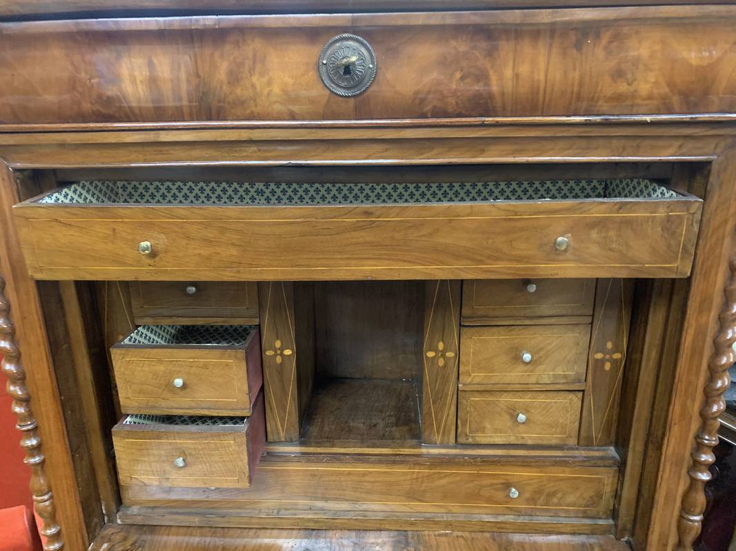 Segretaire con ribalta a scrittoio in radica di noce epoca XIX secolo