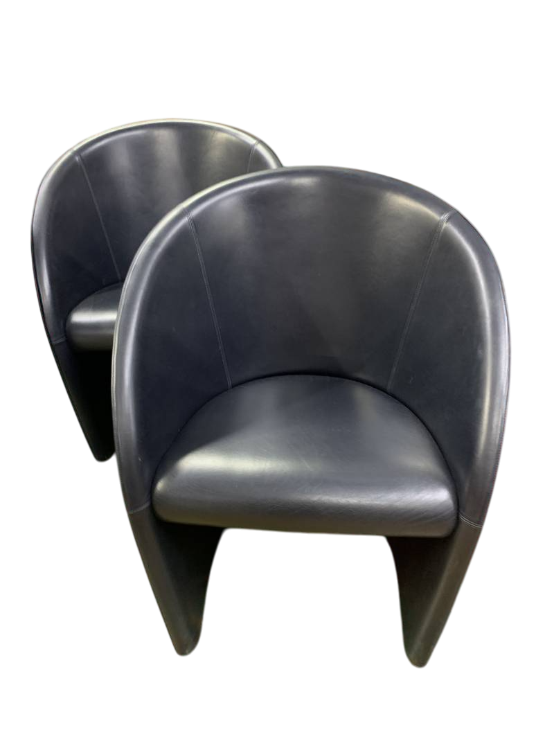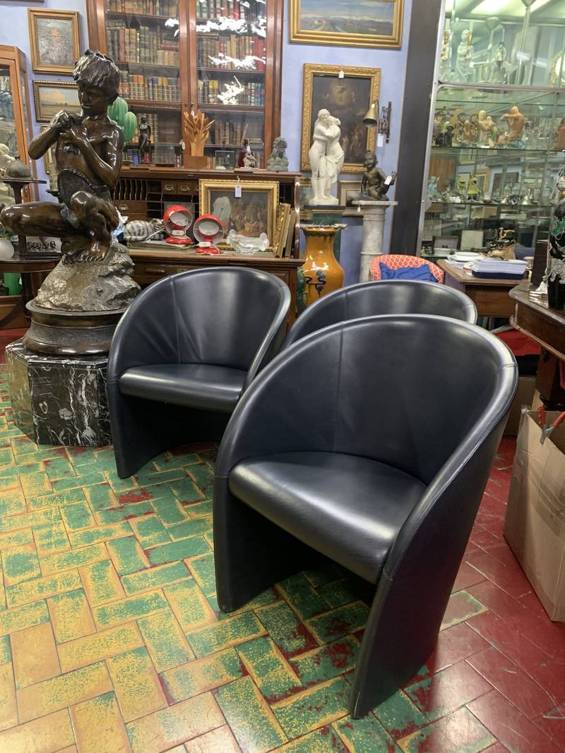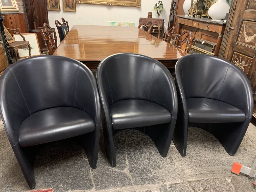 Serie di 3 poltrone in pelle nera Intervista di Poltrona Frau, disegnata da Lella e Massimo Vignelli