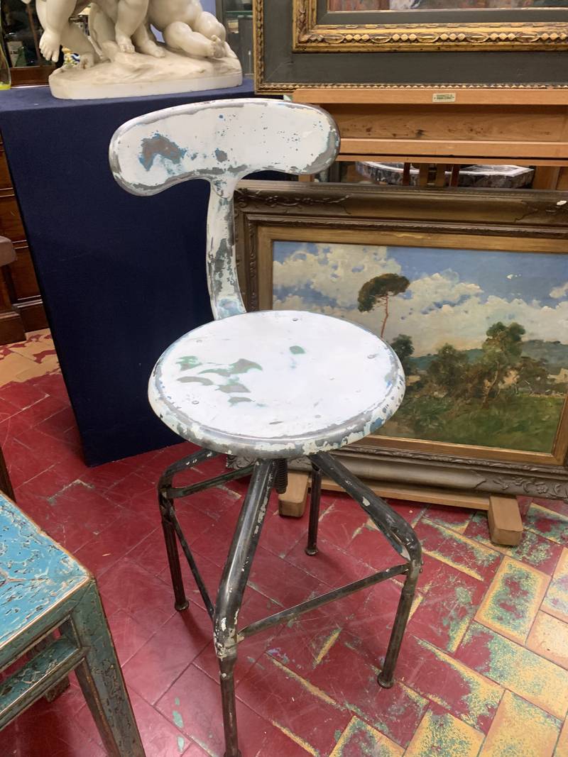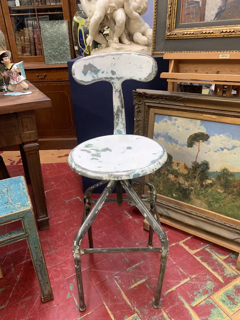 Sgabello alto da pittore dei primi del 900 sedia alta girevole industriale anni 50 Francia
