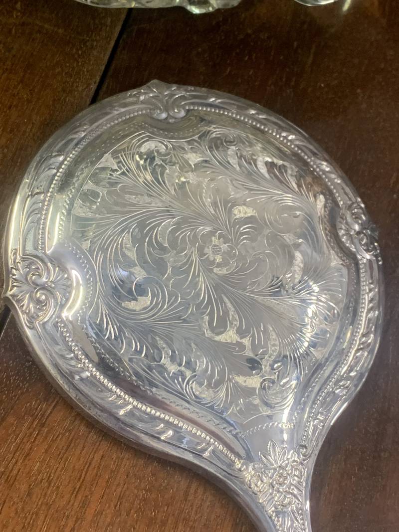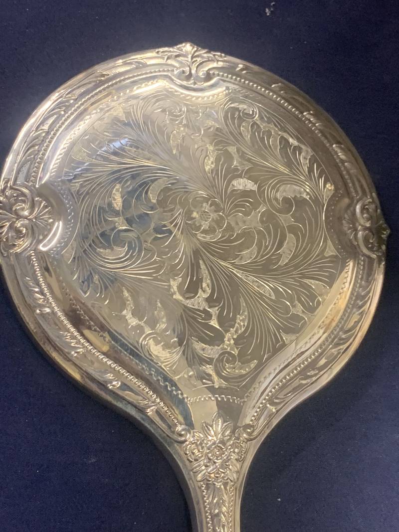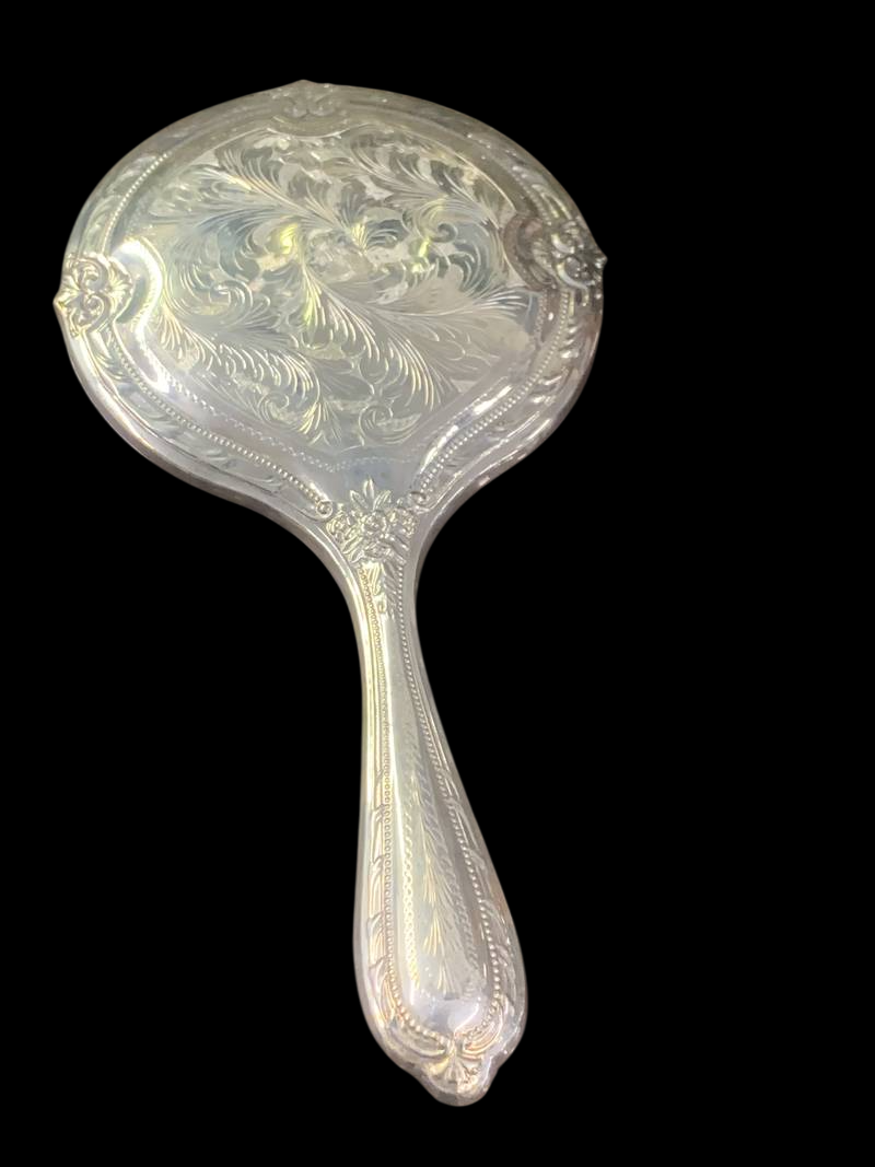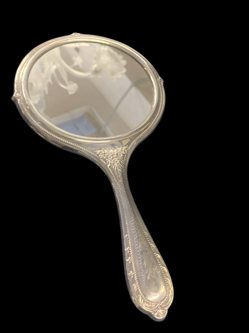 Specchiera a mano in argento a titolo 800 fine cesello Liberty