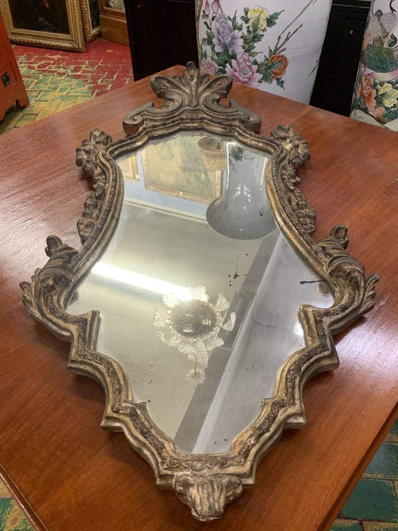 Specchiera con cornice in legno dorato sagomato epoca XX sec