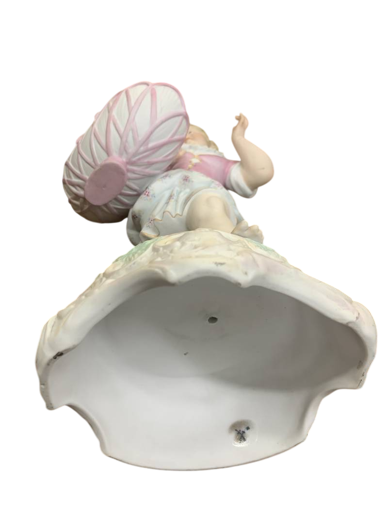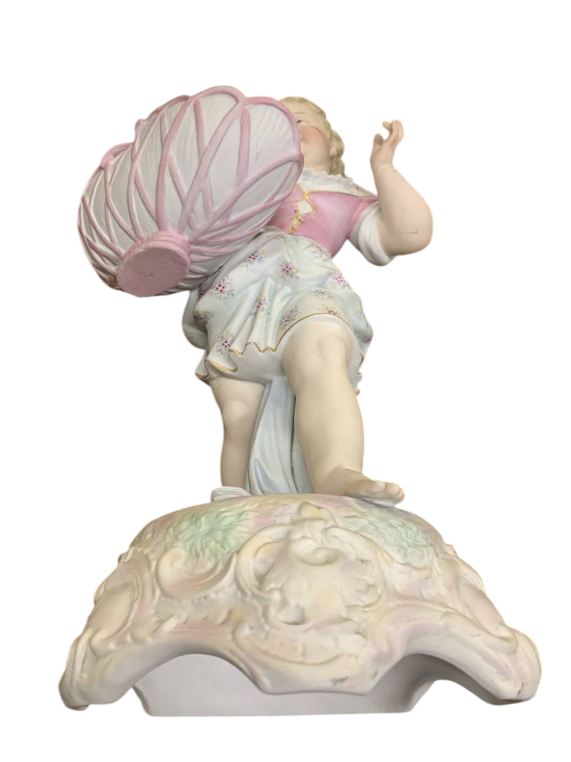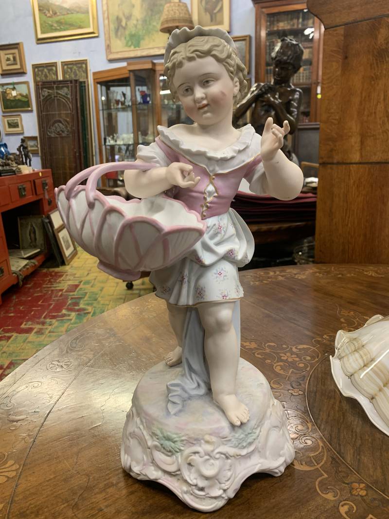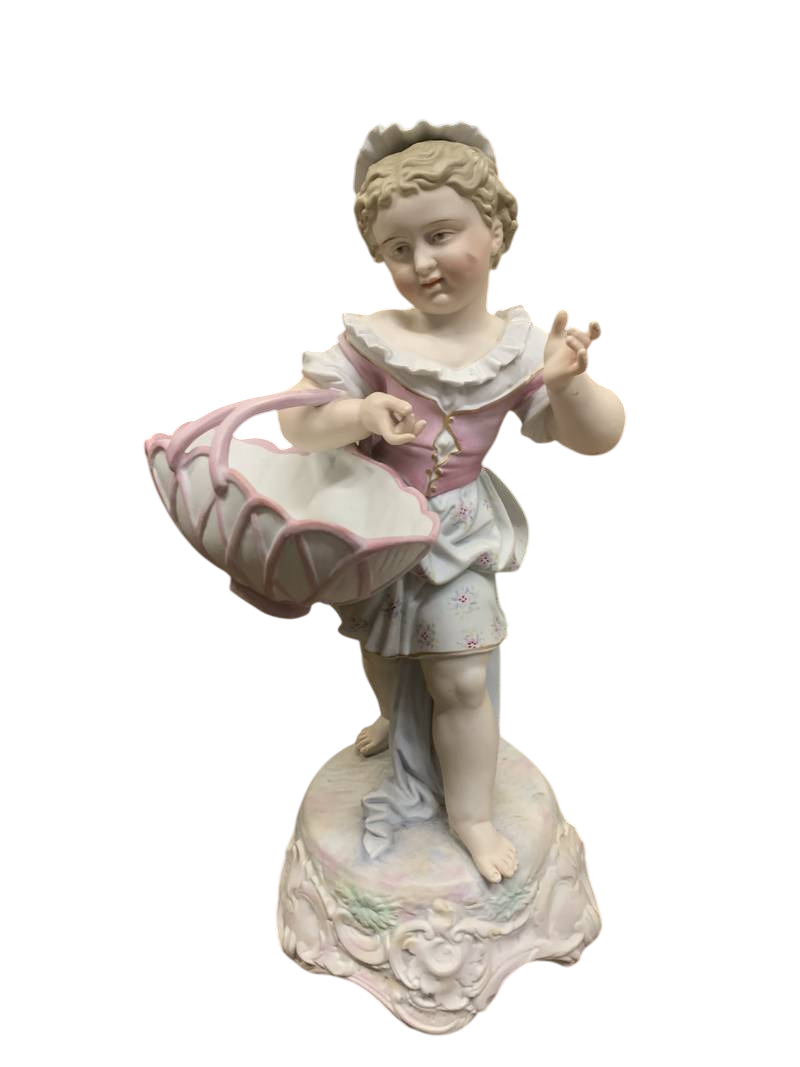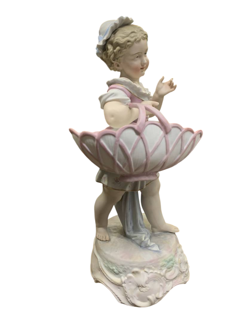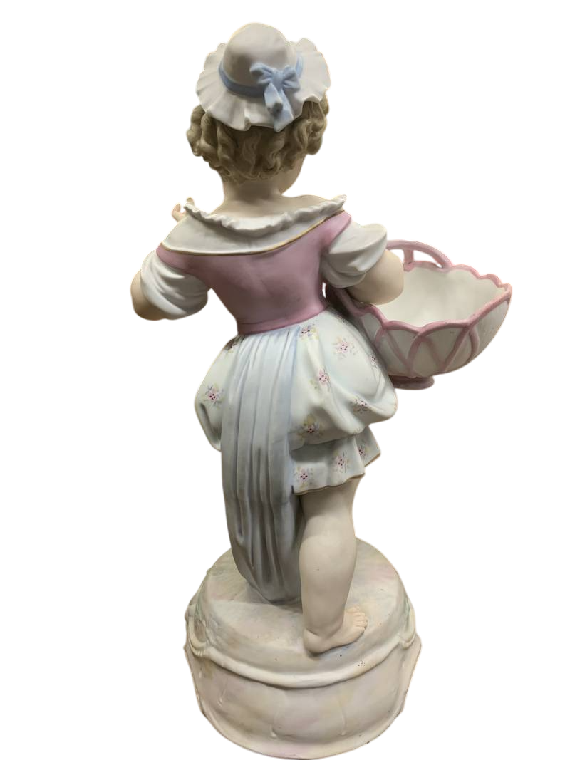 Statuina bimba con cestino e cappello porcellana di Meissen epoca 800