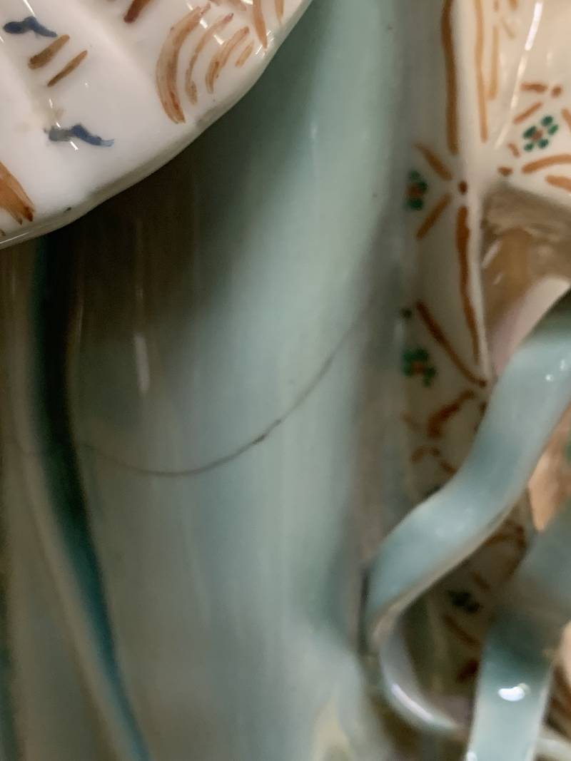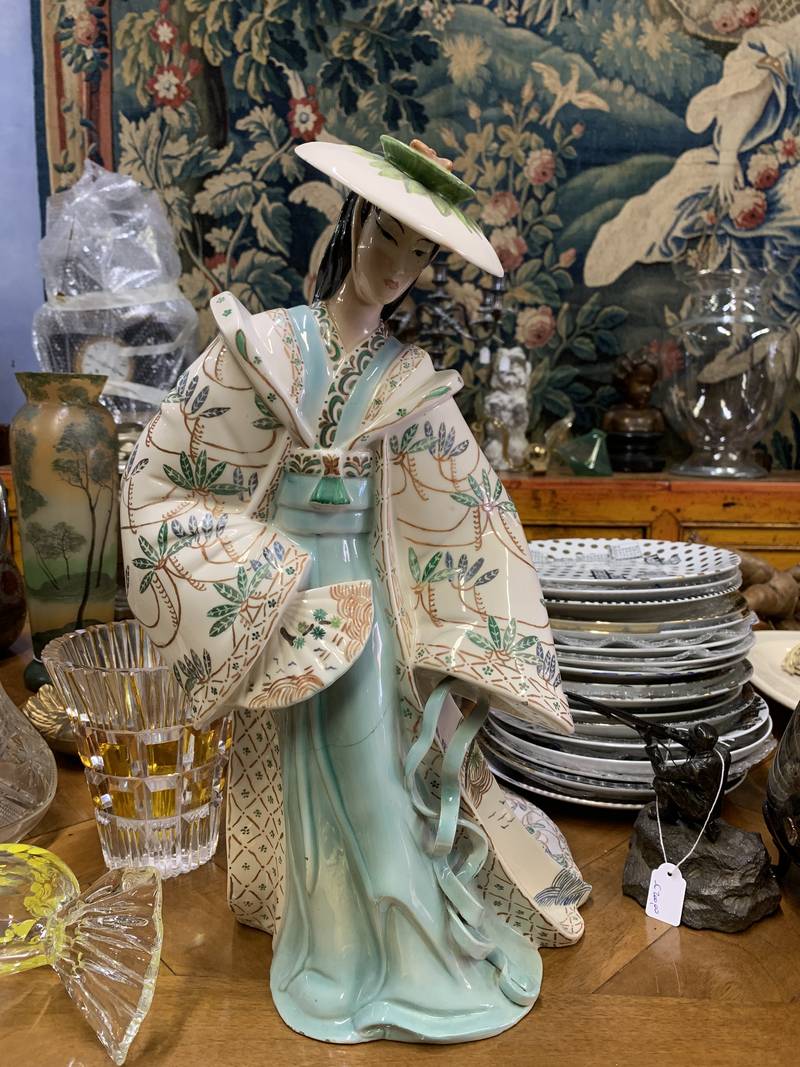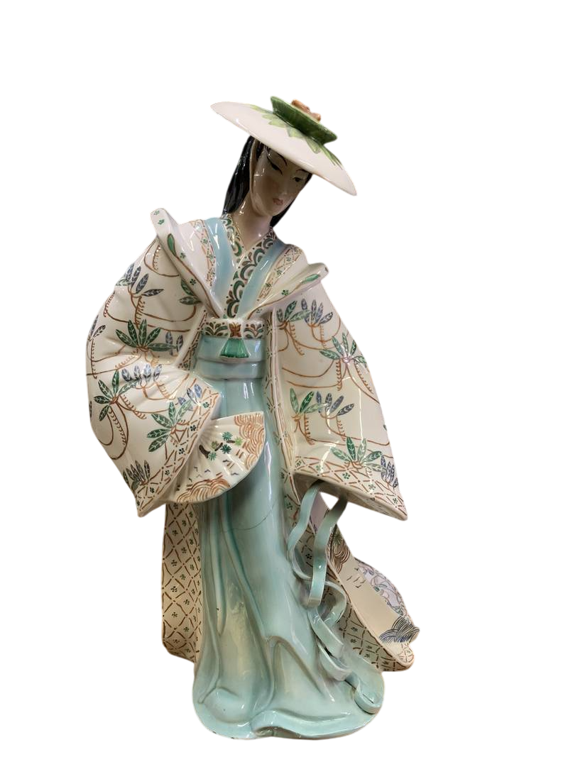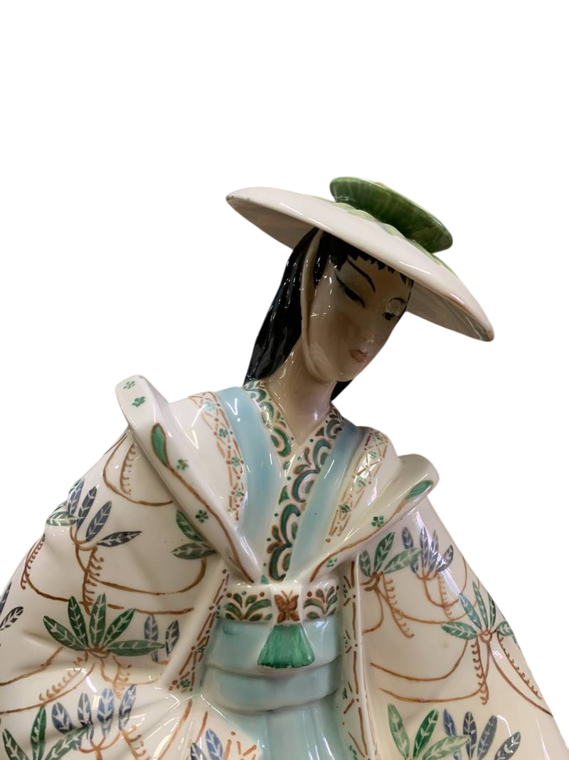 Figura Orientale in ceramica a colaggio con decoro policromo.