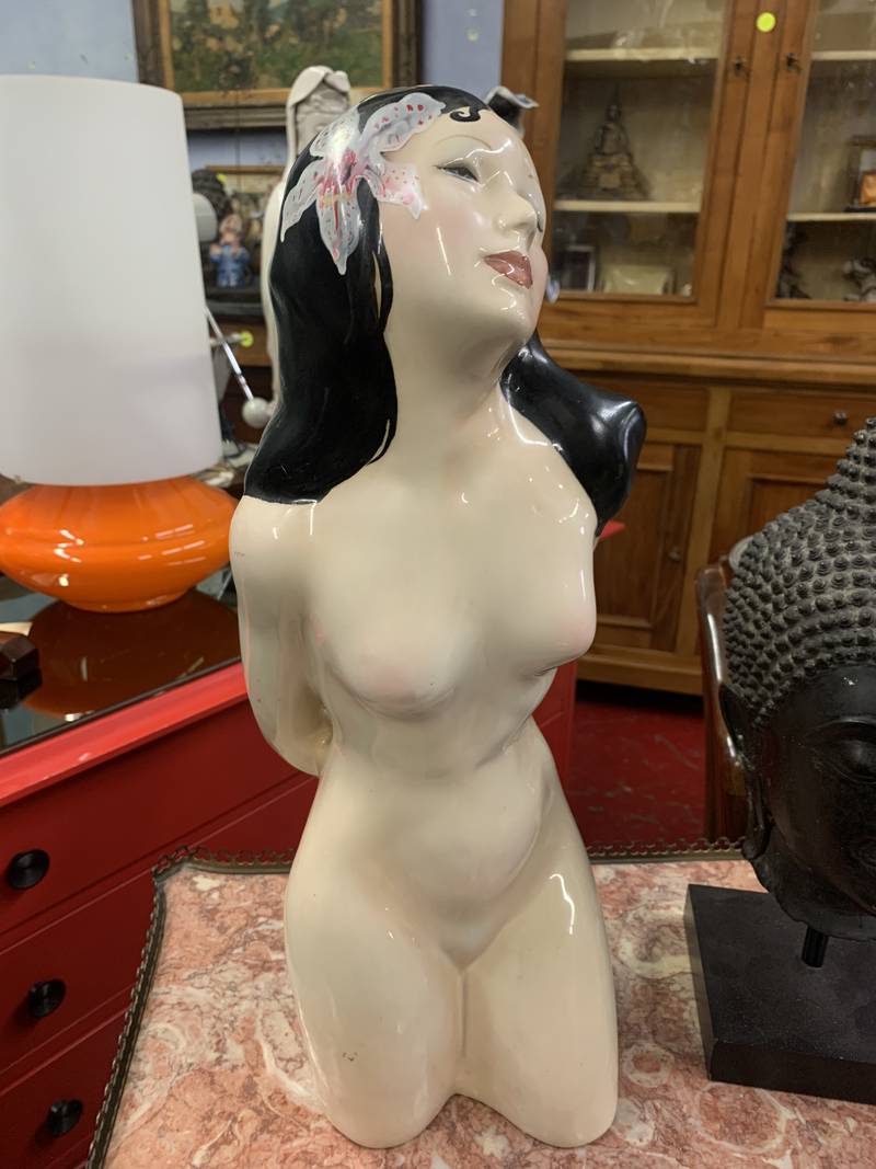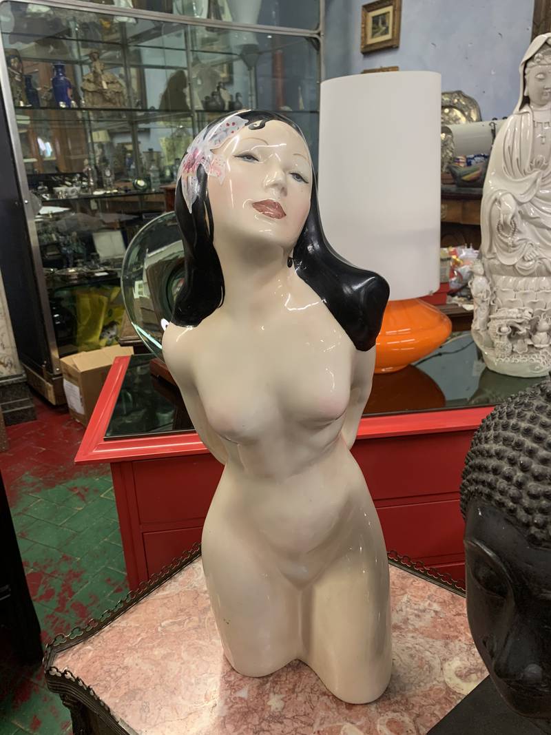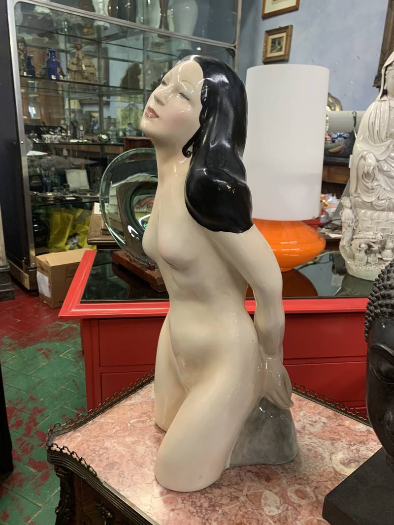 Statuina nudino Art Deco’ hawaiana ceramica originale Ronzan Torino XX secolo