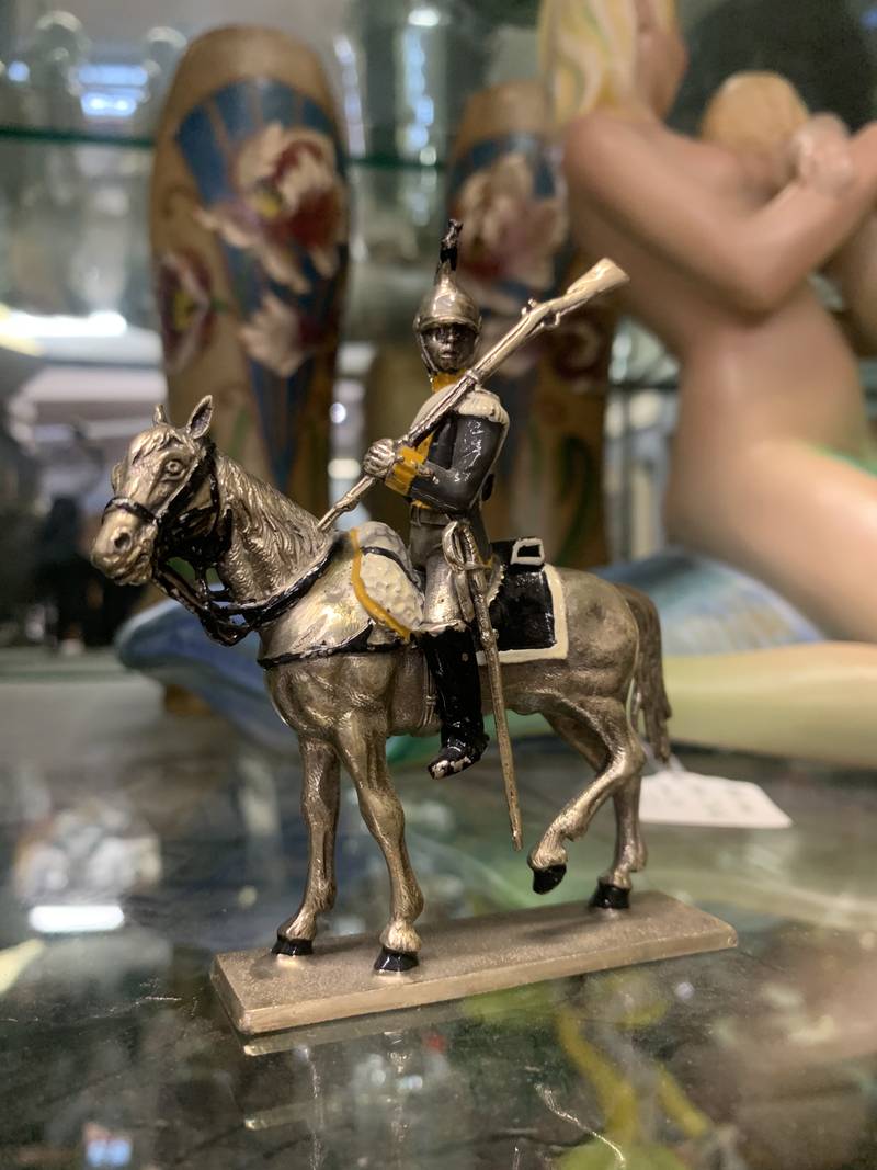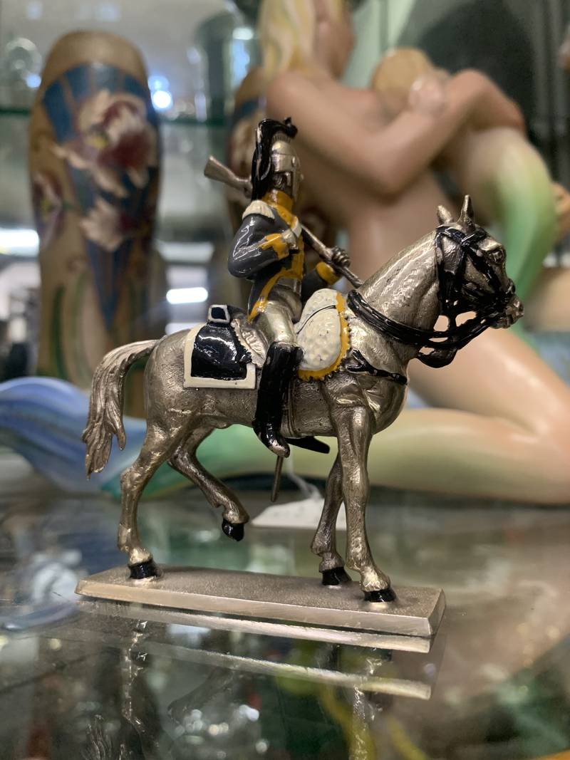 figurina piccola statuina di soldato cavalleria argento a titolo 800 con finiture parzialmente dorate