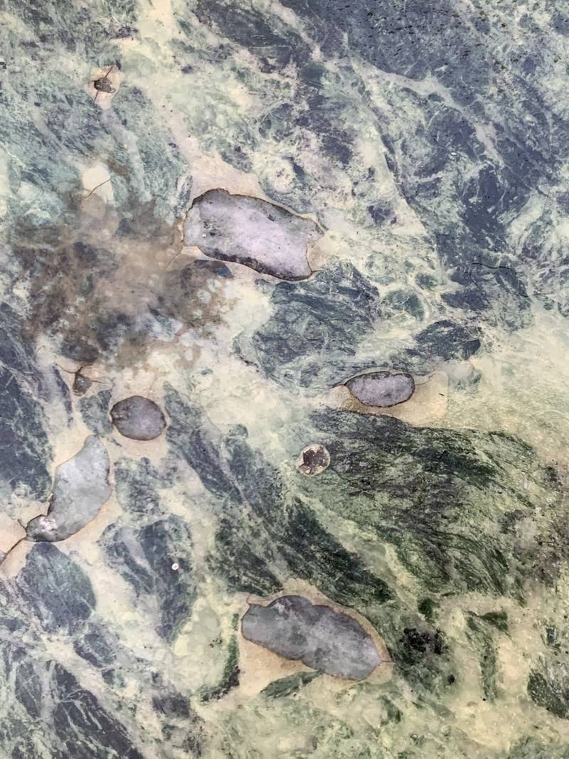 piano in marmo verde Alpi che pero’ presenta qualche chips sul piano evidenziato in foto