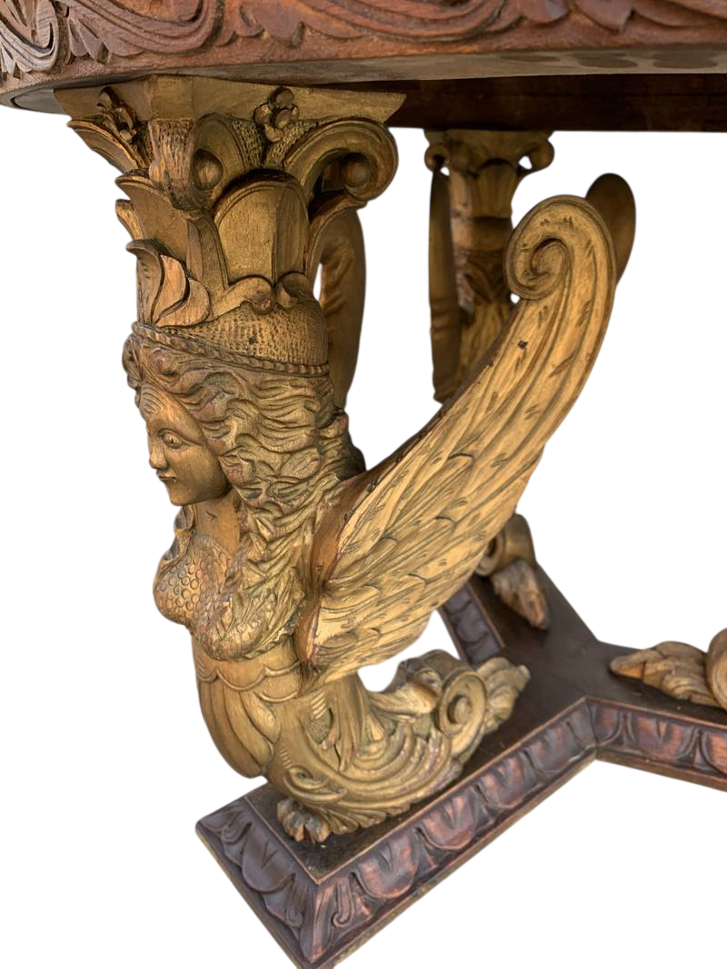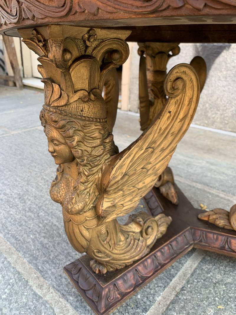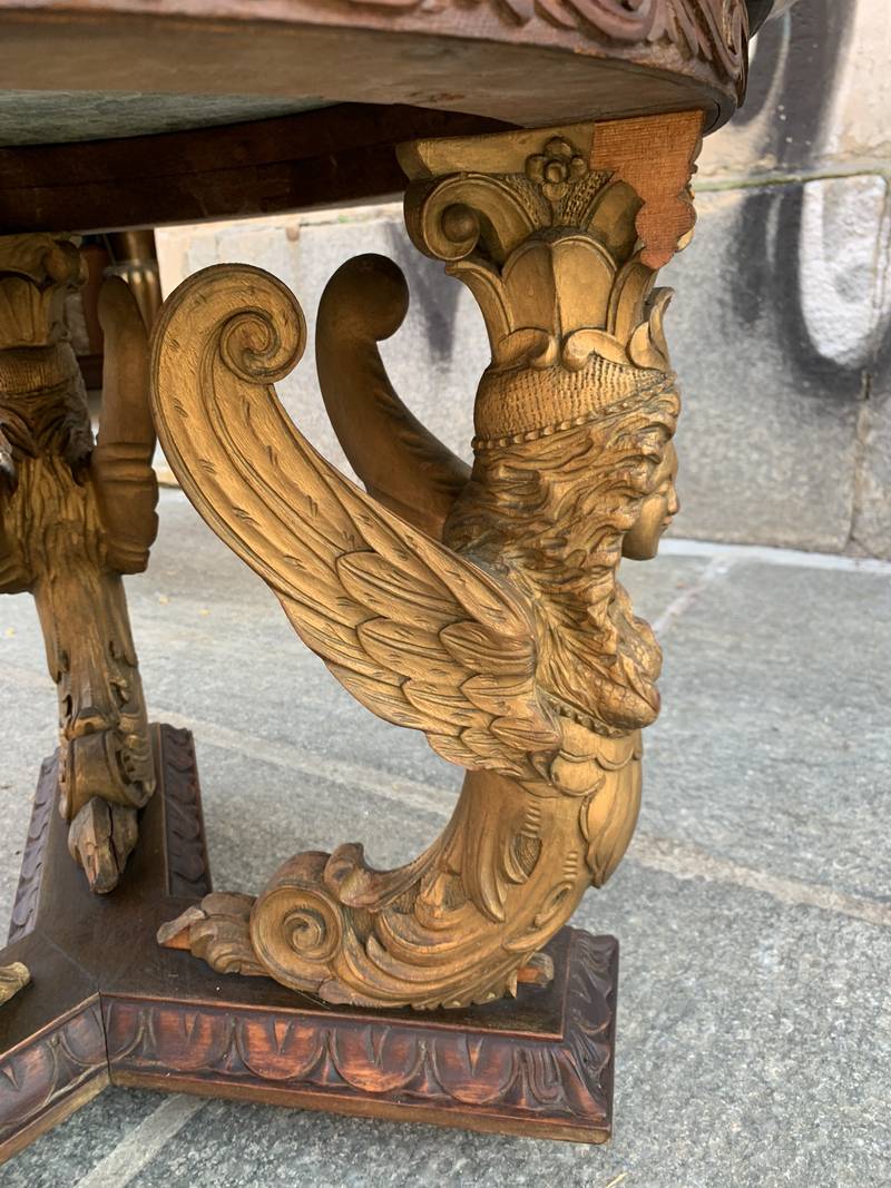 sorretto da cariatidi in legno scolpito intagliato e dorato anni 30 40