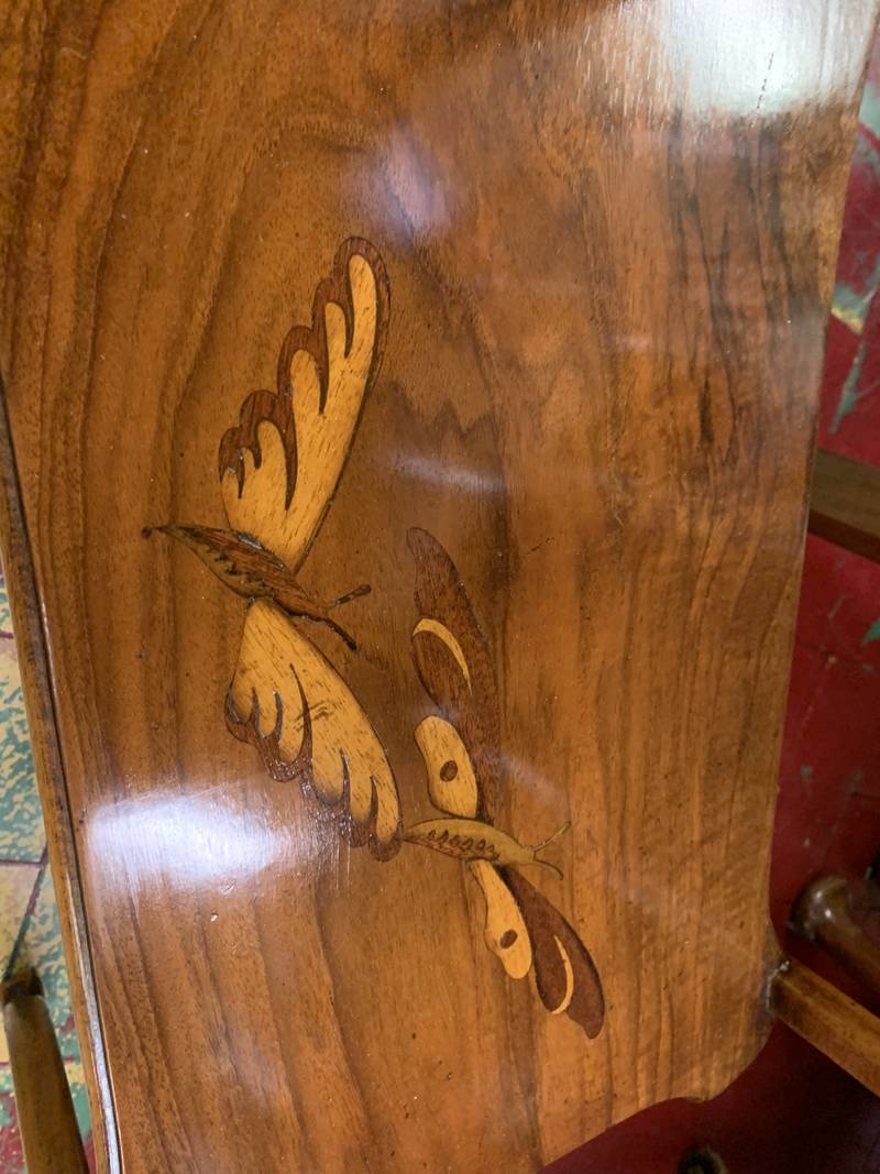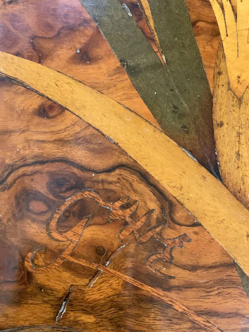 Tavolino Liberty, epoca inizio ‘900, piano intarsiato e firmato