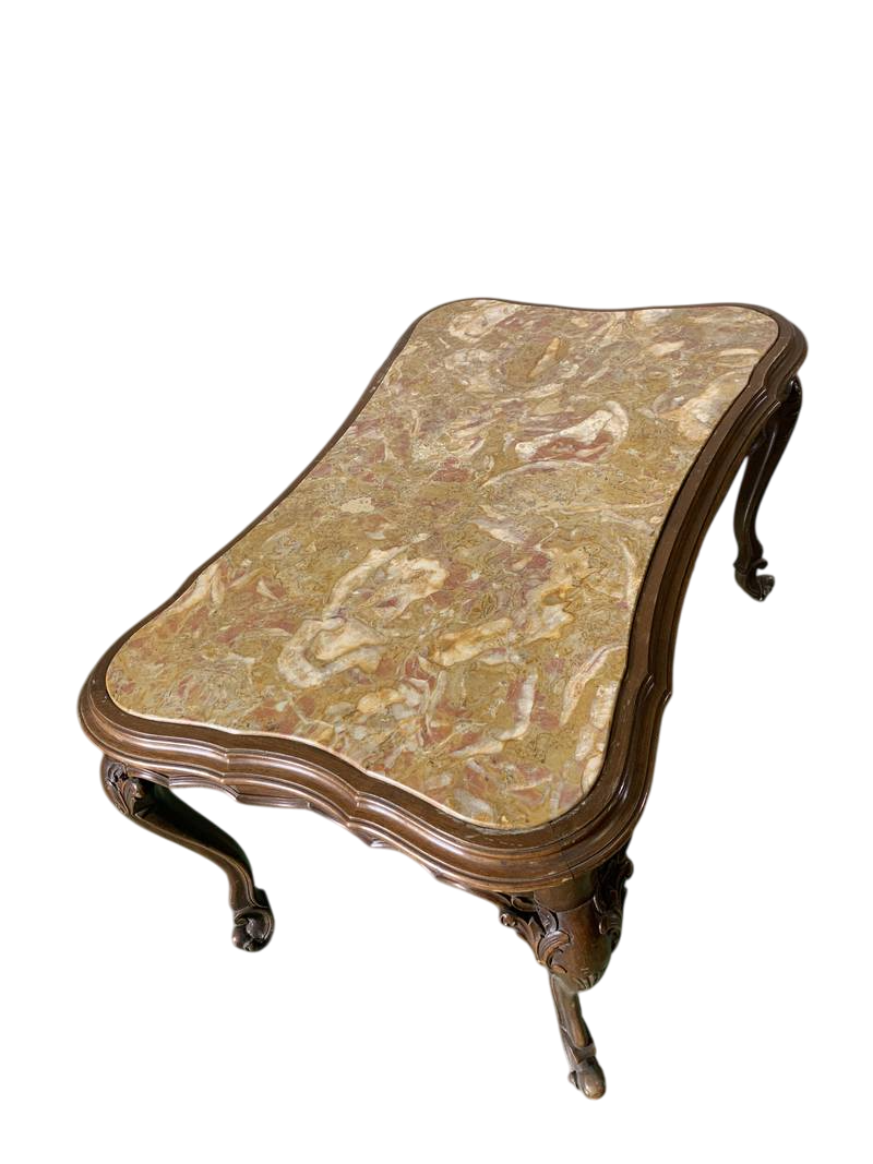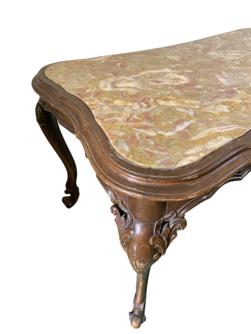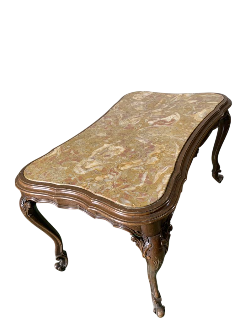 Tavolino basso da salotto piano marmo sagomato gambe intagliate prima meta’ del XX secolo