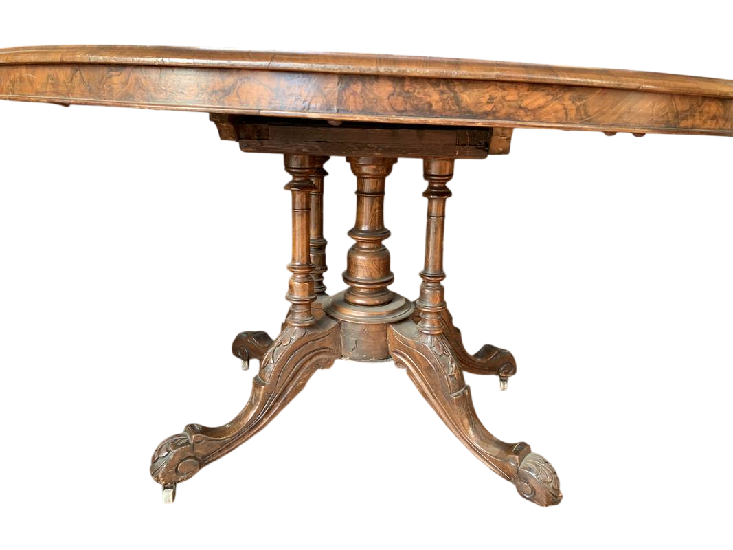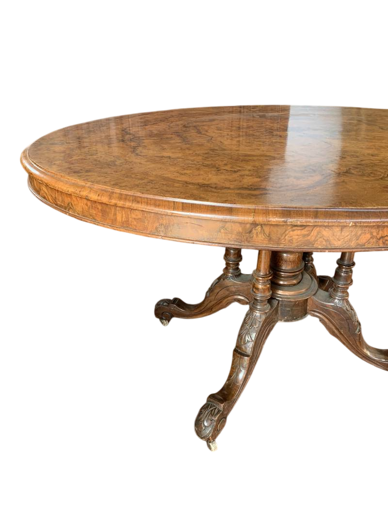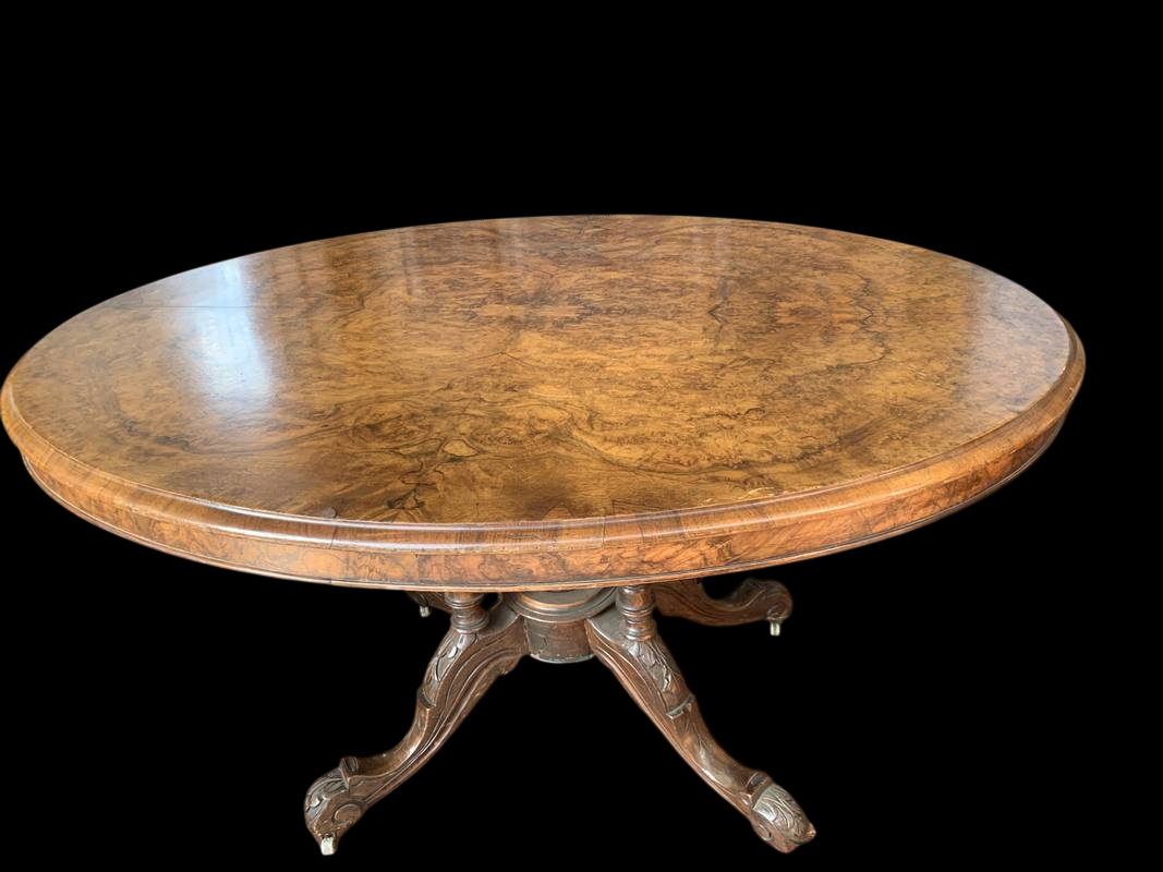 Tavolo inglese ovale Londra in radica epoca XIX secolo