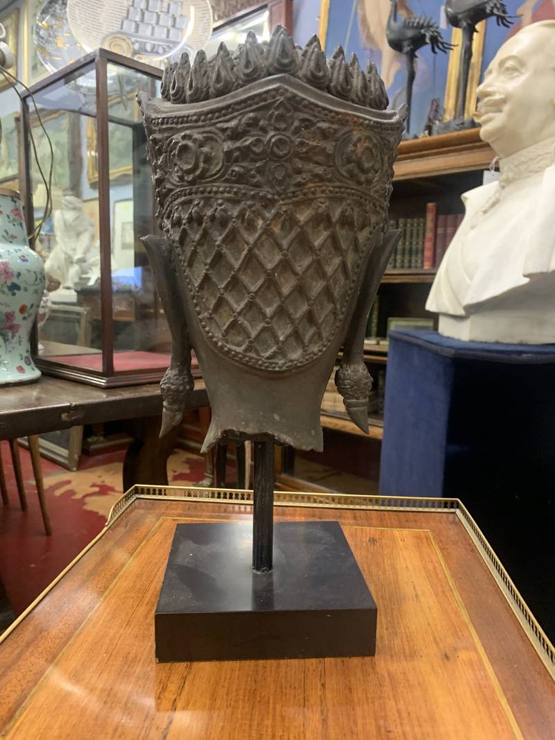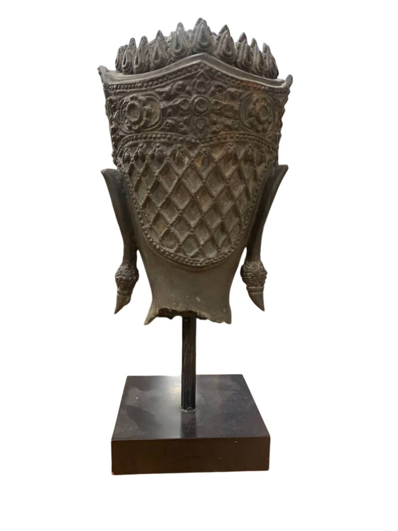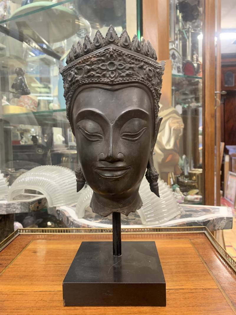 Testa di Buddha con corona in bronzo prob Tailandia epoca XIX sec