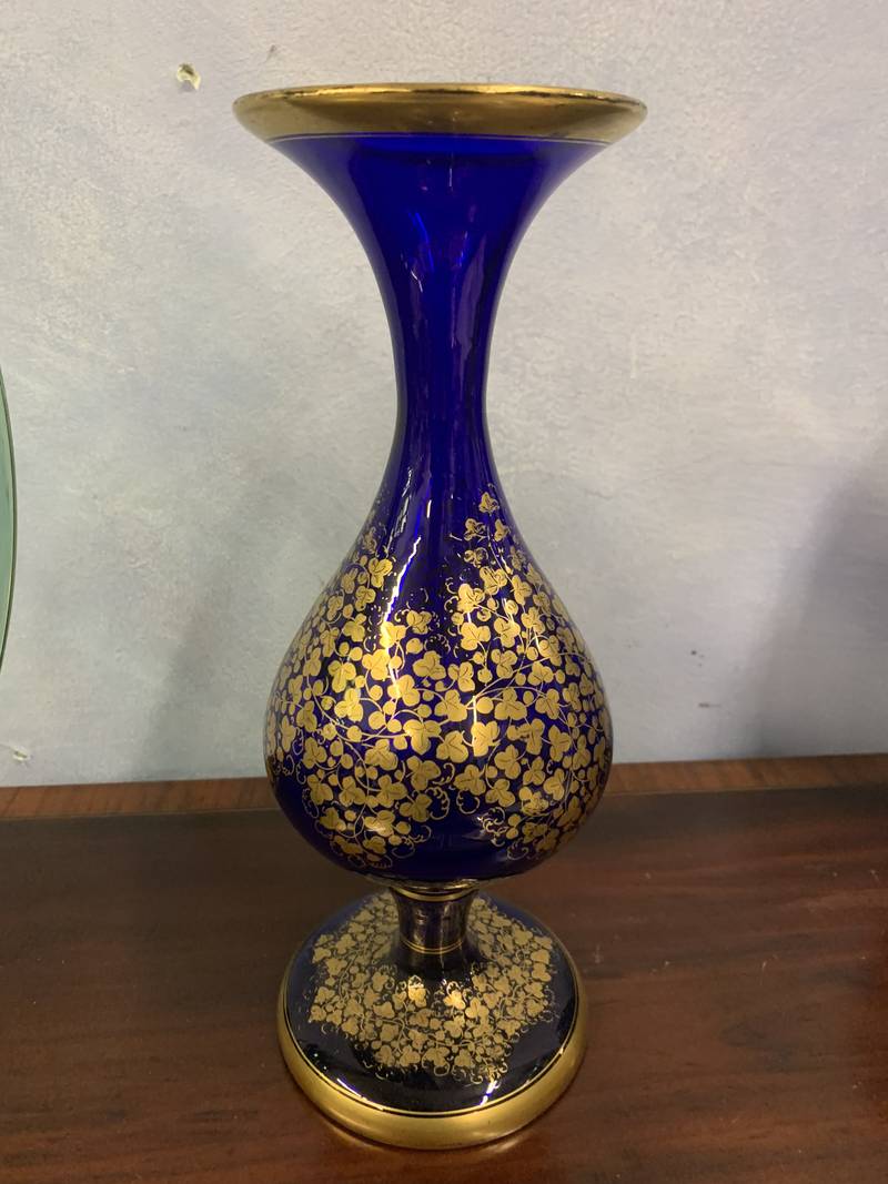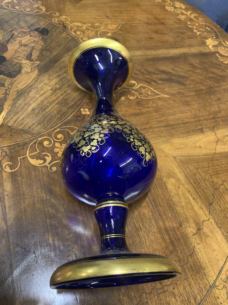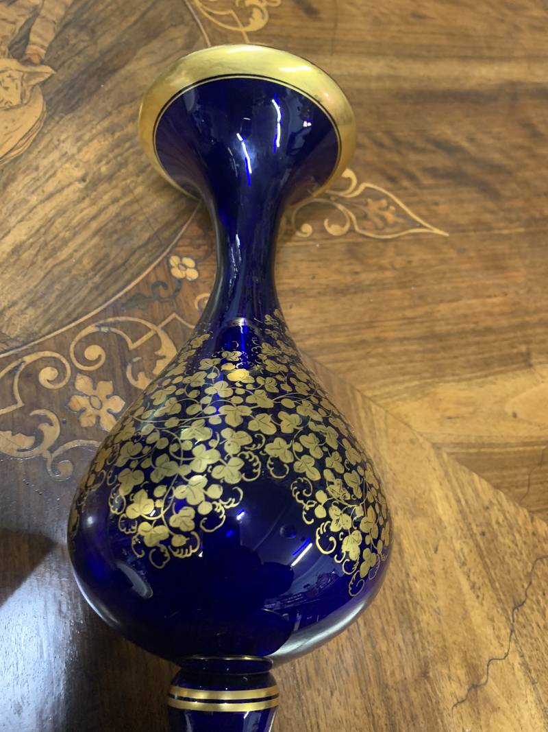 Vaso blu cobalto ed oro XX Secolo