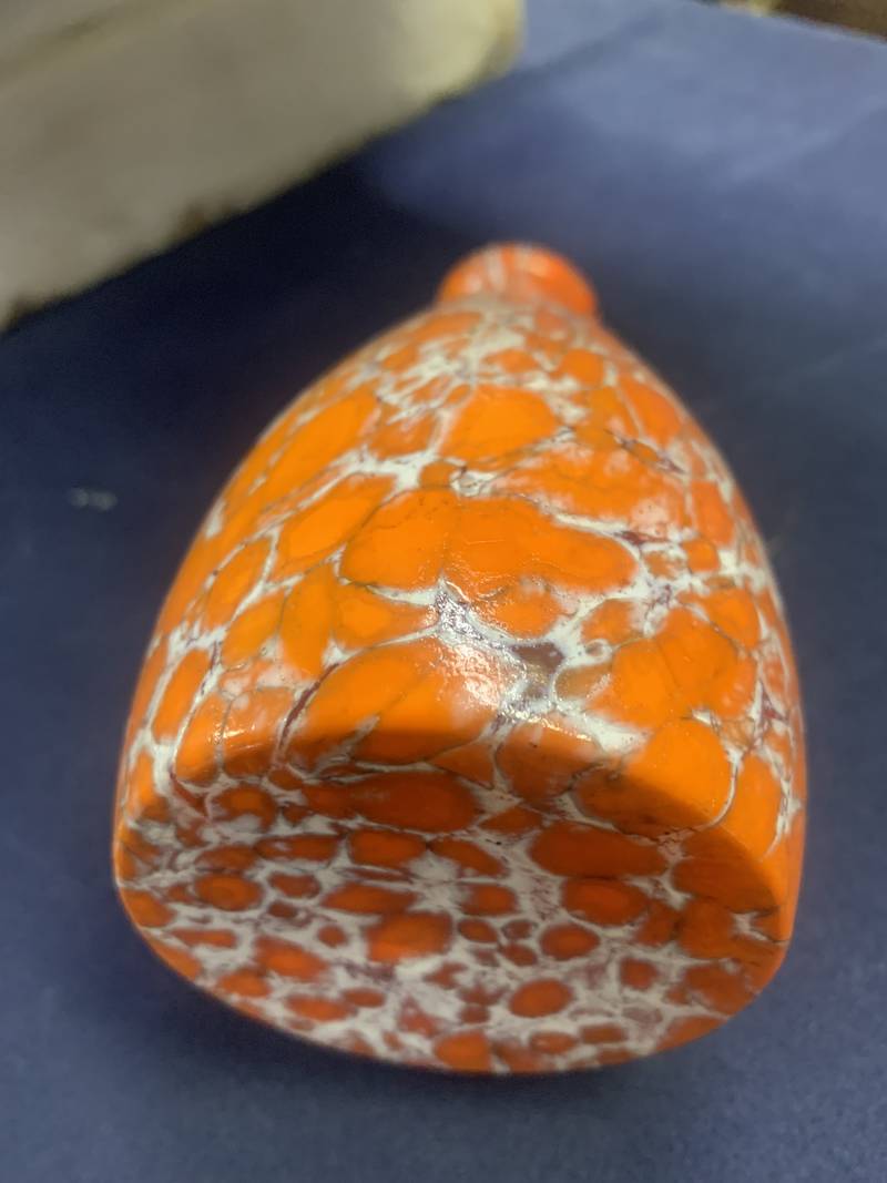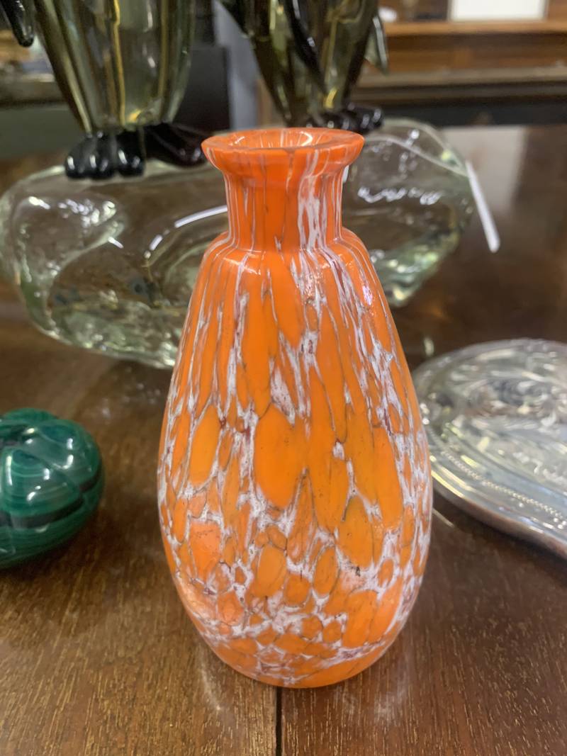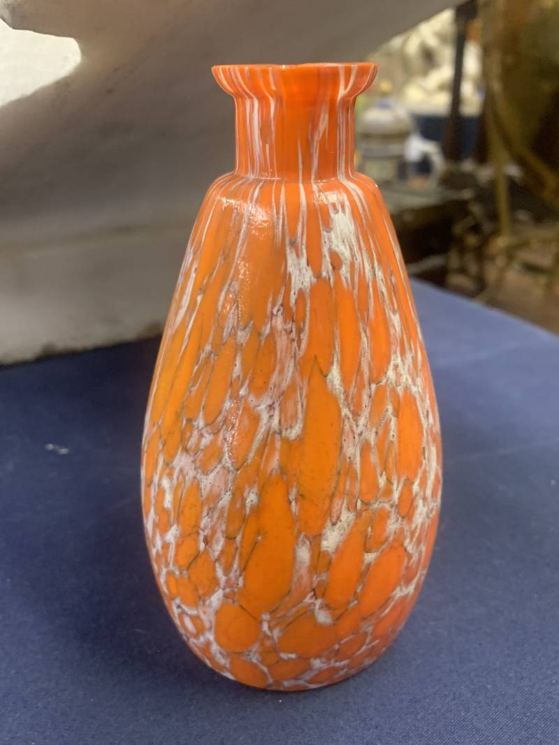 Vaso in vetro incamiciato con decoro a macchie sui toni dell’arancio