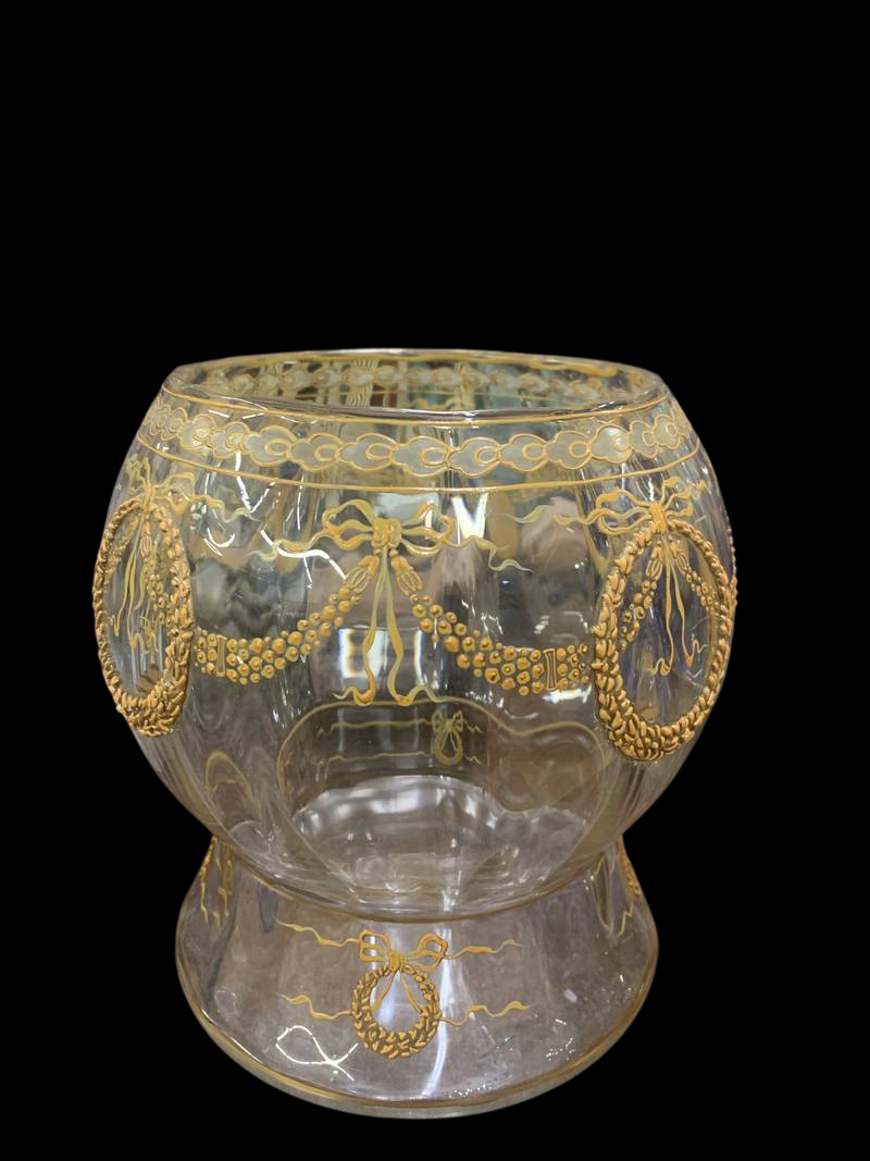 Vaso vetro soffiato con decori neoclassici in oro Parigi