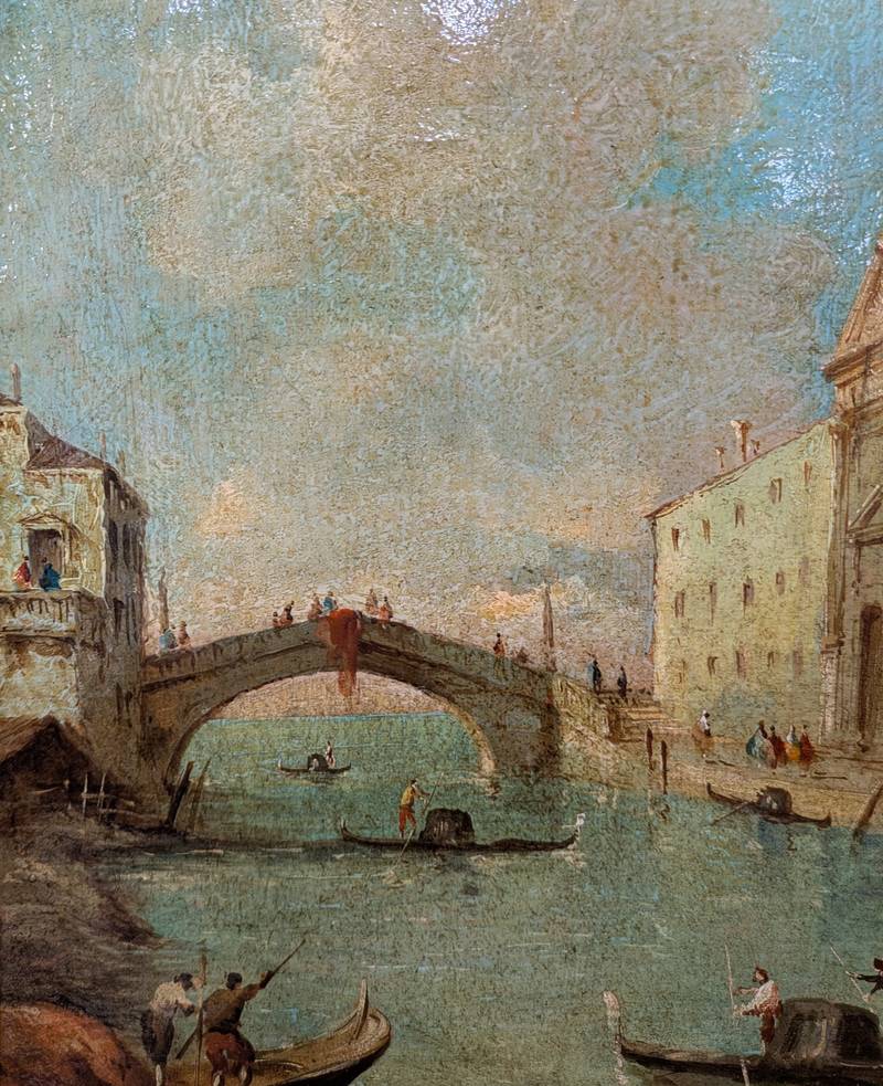 Le opere raffigurano due scorci su Venezia, il primo con le colonne di San Todaro e San Marco, con il palazzo della Biblioteca Marciana sullo sfondo. Il secondo dipinto è una veduta su un canale.