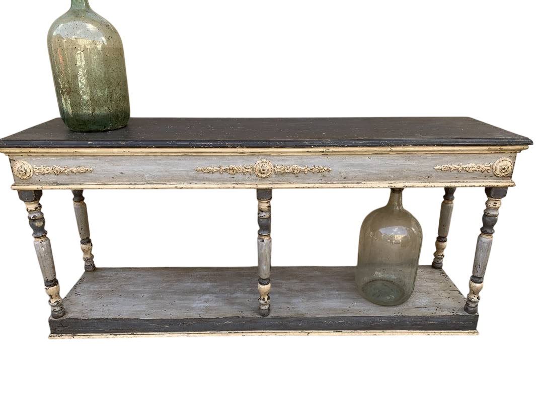 Antica grande consolle grande bancone Luigi XVI laccata Gustaviana