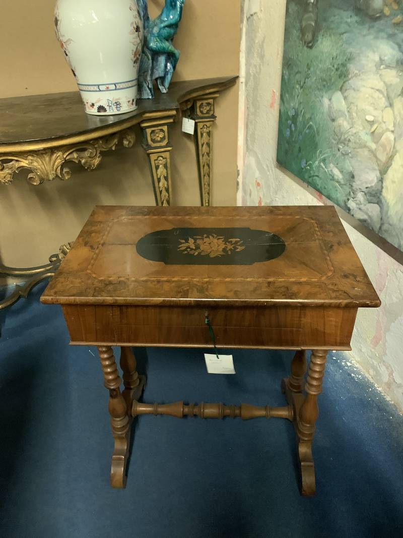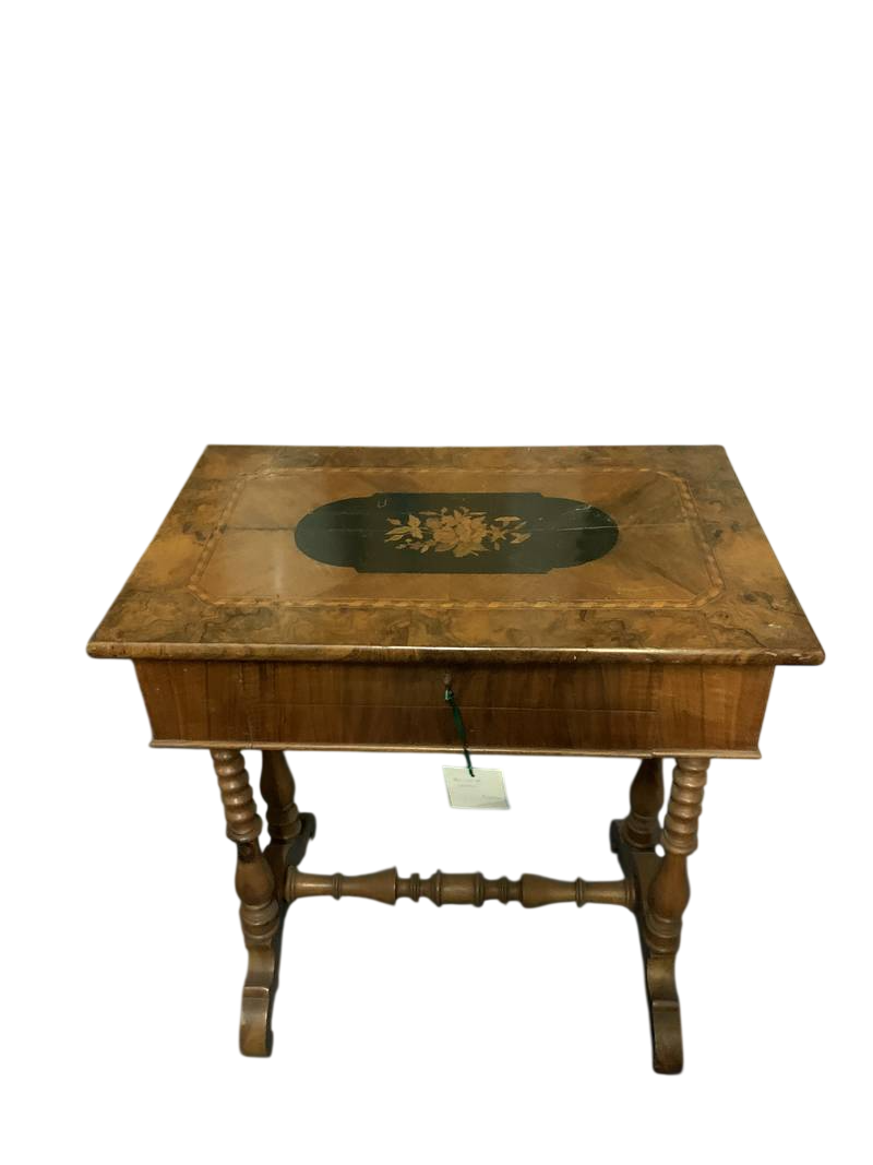 Antico tavolino porta lavoro travailleuse 1880 finemente intarsiato
