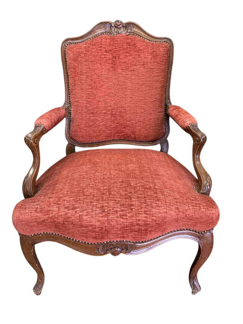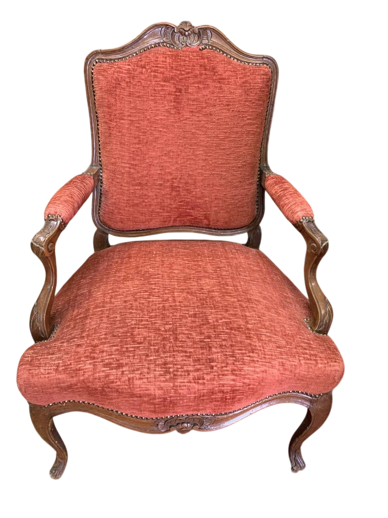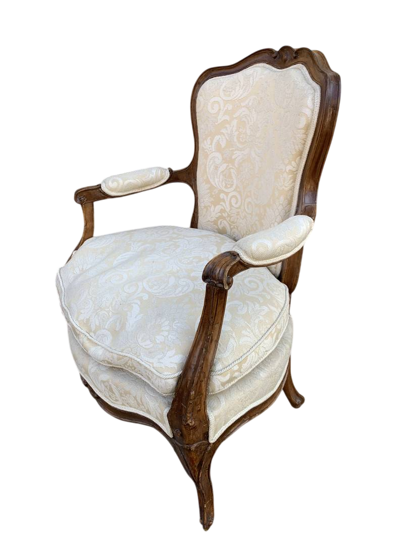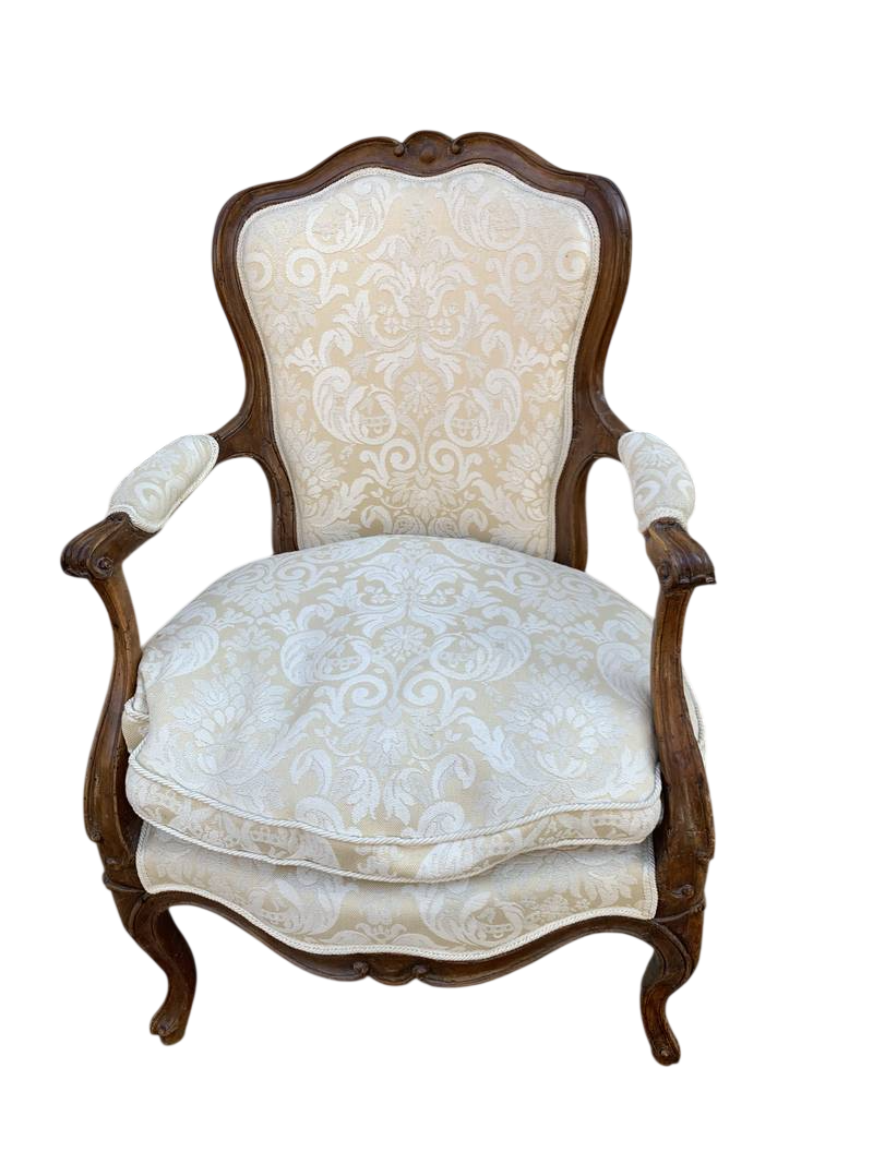 Antica poltroncina poltrona cabriolet stile Luigi XV in noce imbottita bianca